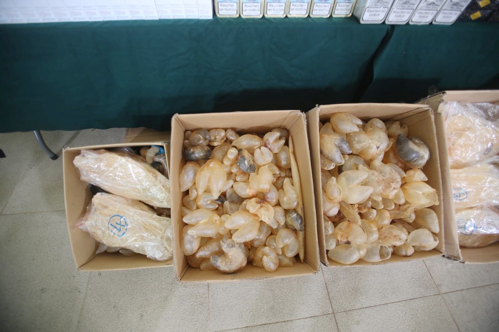 海關(guān)發(fā)現(xiàn)不法分子企圖將違禁物品混入已報(bào)關(guān)的貨物中,並在凌晨時(shí)分過(guò)關(guān),以逃避偵查。海關(guān)重申,會(huì)繼續(xù)以情報(bào)分析和風(fēng)險(xiǎn)管理嚴(yán)厲執(zhí)法,打擊各類(lèi)走私活動(dòng)。(記者 區(qū)天海)
