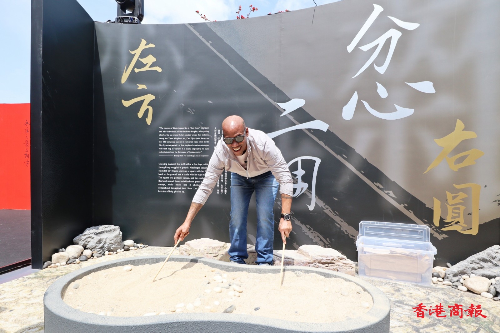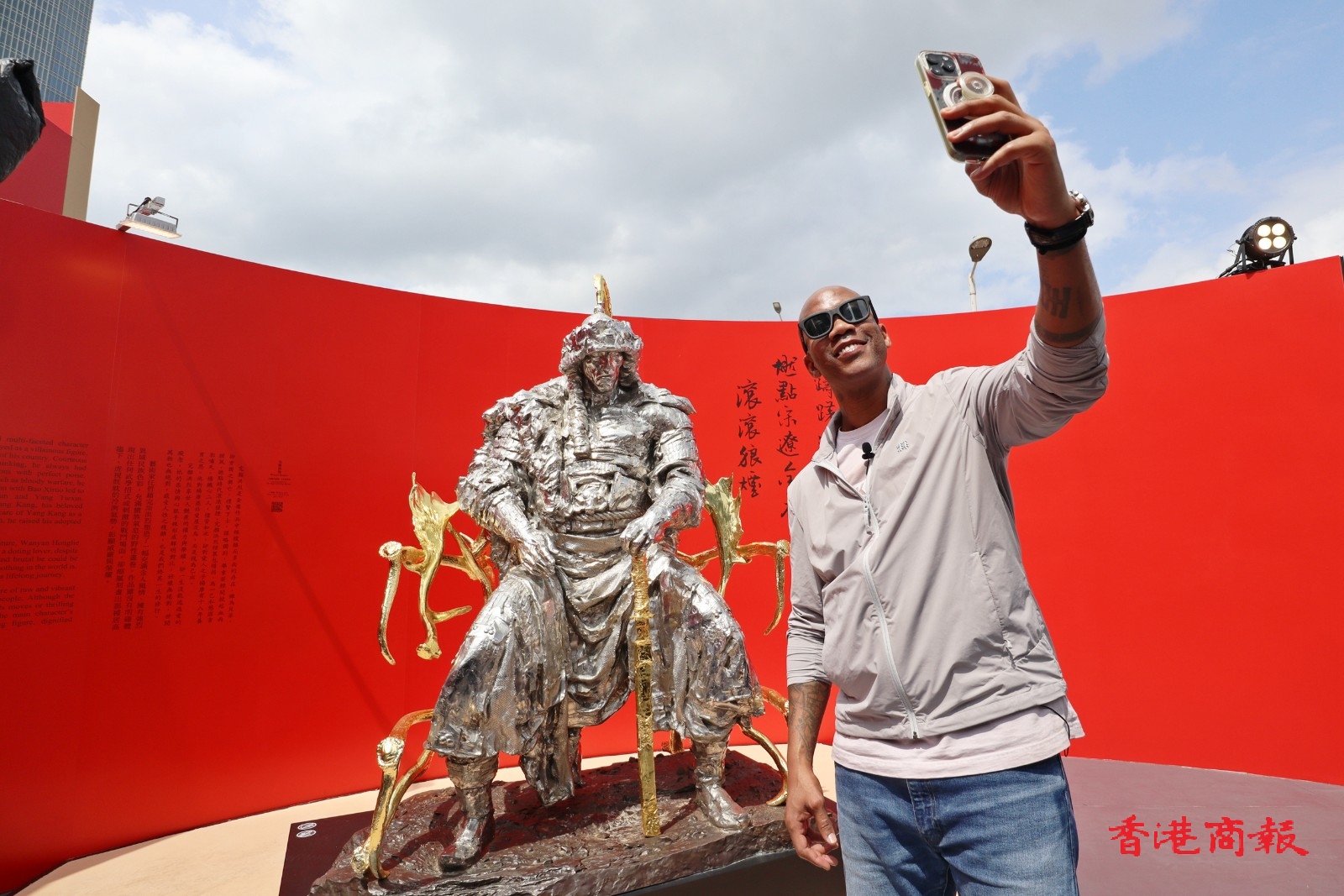 去年11月透過高端人才通行證計劃(「高才通」)來港發(fā)展和居住的籃球名宿馬貝利(Stephon Marbury),今午(22日)到中環(huán)愛丁堡廣場與策展人方圓明及著名雕塑藝術家任哲,參觀「俠之大者」金庸百年誕辰紀念展覽。差不多每個展區(qū)都成為馬貝利的打卡熱點。