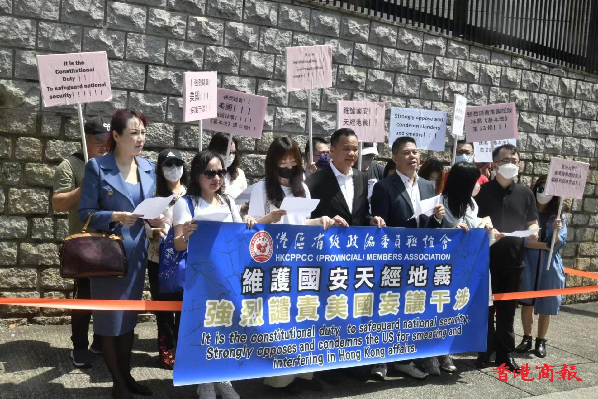 港區(qū)省級(jí)政協(xié)委員聯(lián)誼會(huì)、「保衛(wèi)香港運(yùn)動(dòng)」、元朗一批自發(fā)市民今日(24日)先後到美國(guó)駐港領(lǐng)事館請(qǐng)願(yuàn),強(qiáng)烈譴責(zé)美國(guó)國(guó)會(huì)暨行政當(dāng)局中國(guó)委員會(huì) (CECC)主席史密斯,妖魔化《維護(hù)國(guó)家安全條例》,恐嚇在港的美國(guó)商人和僱員,並催促美國(guó)政府制裁香港。
