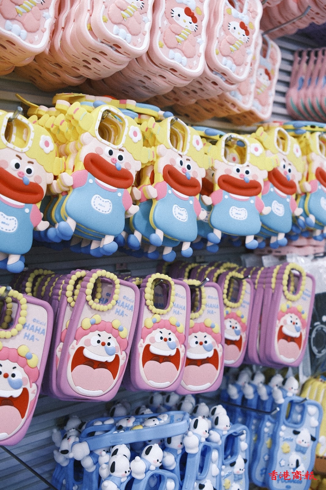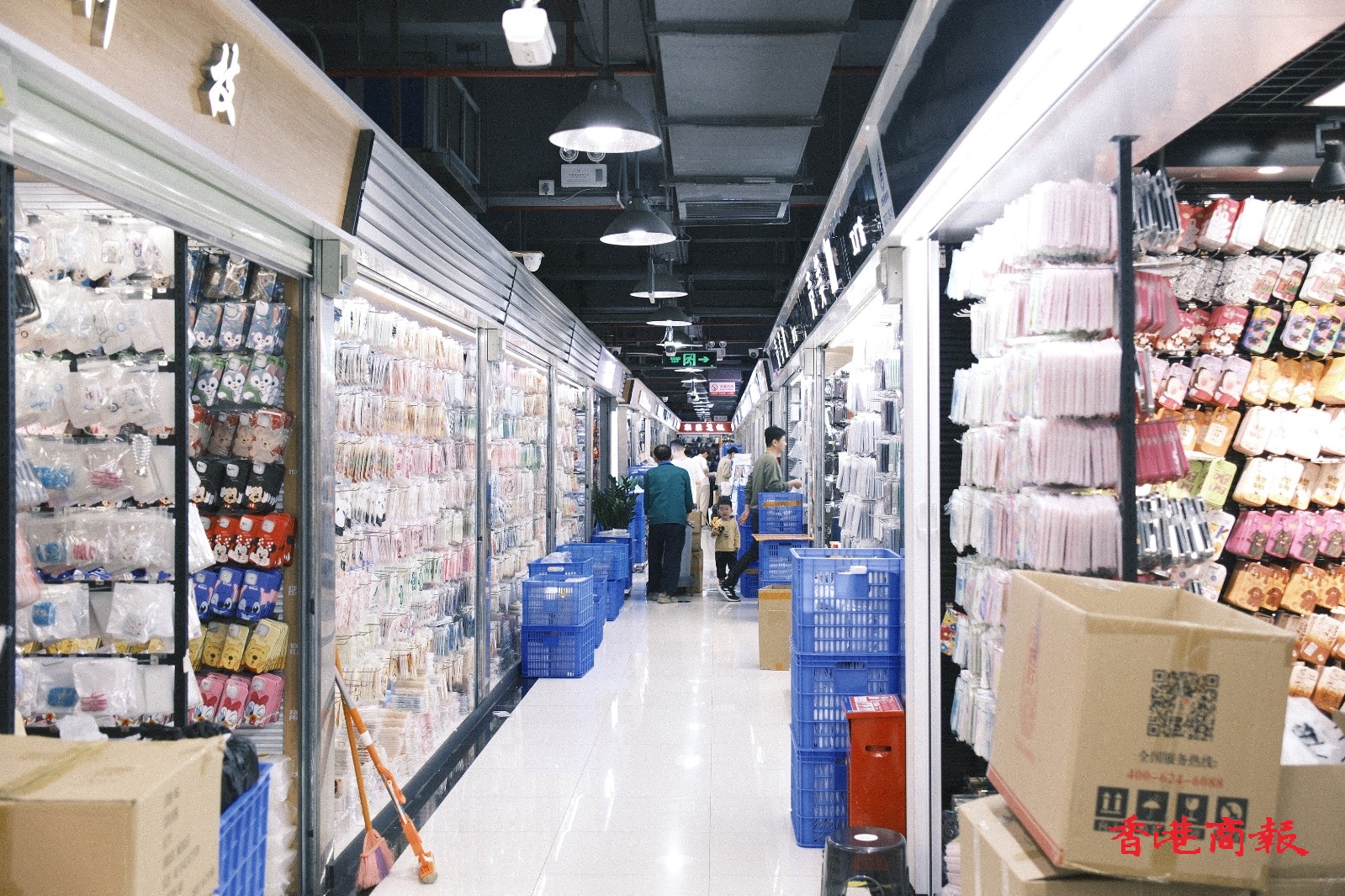 市場內(nèi)檔口緊湊,手機殼款式琳瑯滿目。