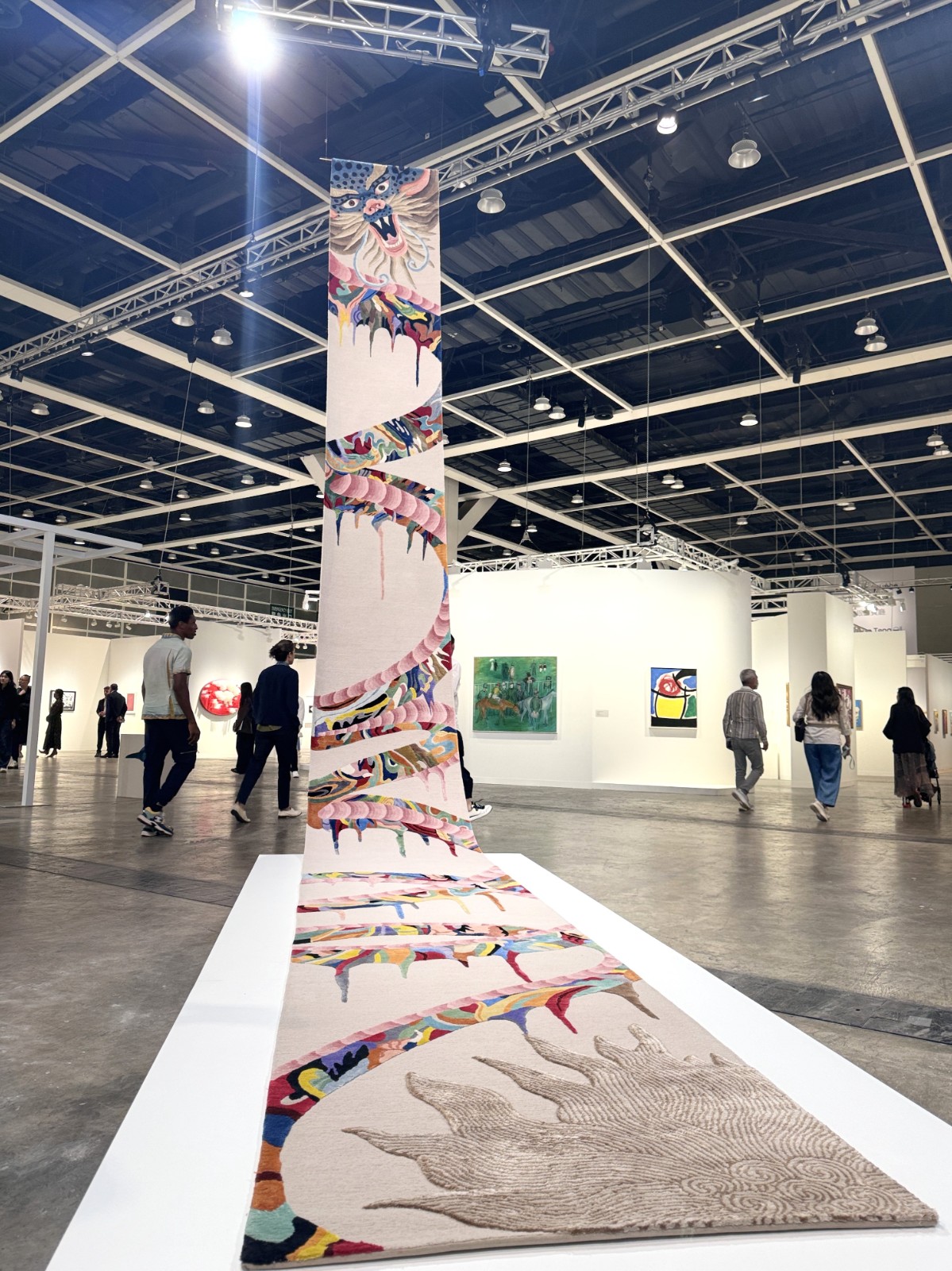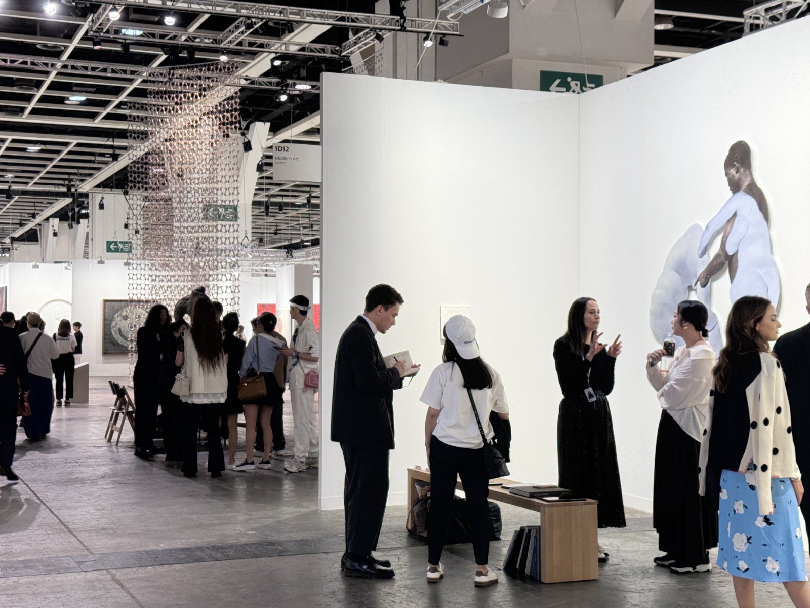 現(xiàn)場(chǎng)藝術(shù)品充滿多樣性,今天預(yù)展已聚集大量藏家,如本地藝?yán)取窹earl Lam Galleries」帶來(lái)Mr Doodle(塗鴉先生)的新作;韓國(guó)釜山藝?yán)取窲ohyun Gallery」展出已故韓國(guó)「單色畫之父」樸棲甫的系列繪畫作品。同時(shí),亦呈現(xiàn)多件大型裝置,如加賀溫作品《Ukiyo-e》加設(shè)榻榻米地板和紙燈籠,具日本建築風(fēng)格特色;尤安·卡波特作品《島(沃拉吉訥)》及《無(wú)盡之海(安魂曲)》組成的巨大裝置,展現(xiàn)如浪濤的曲線,引人深思。 (記者:Janice 圖片:Katherine)