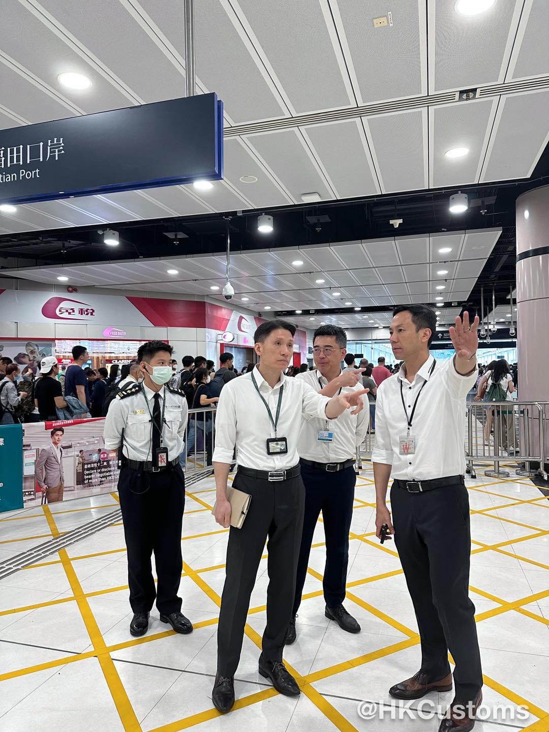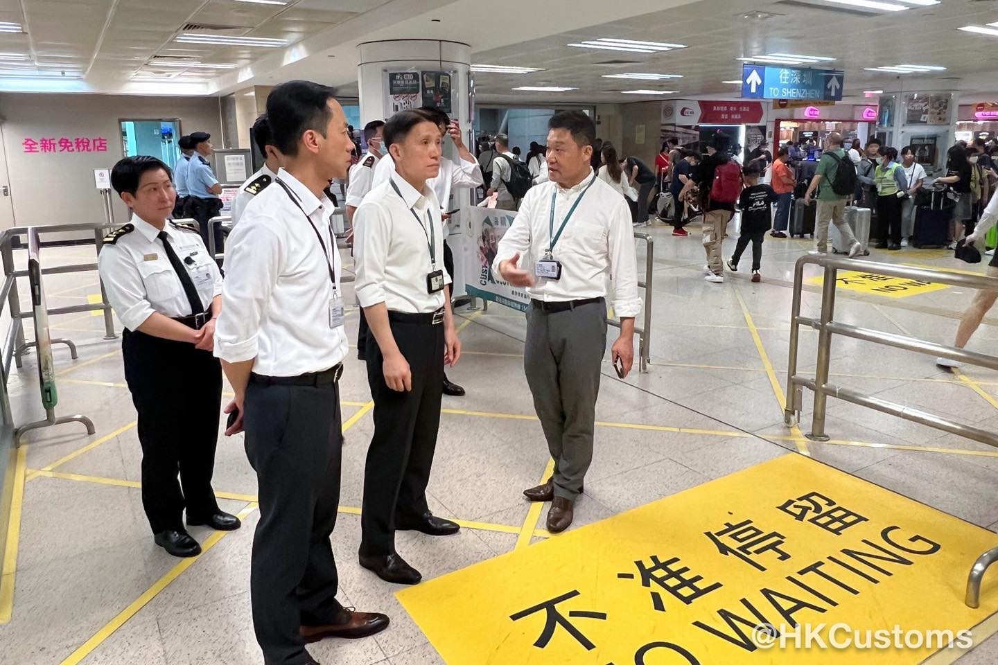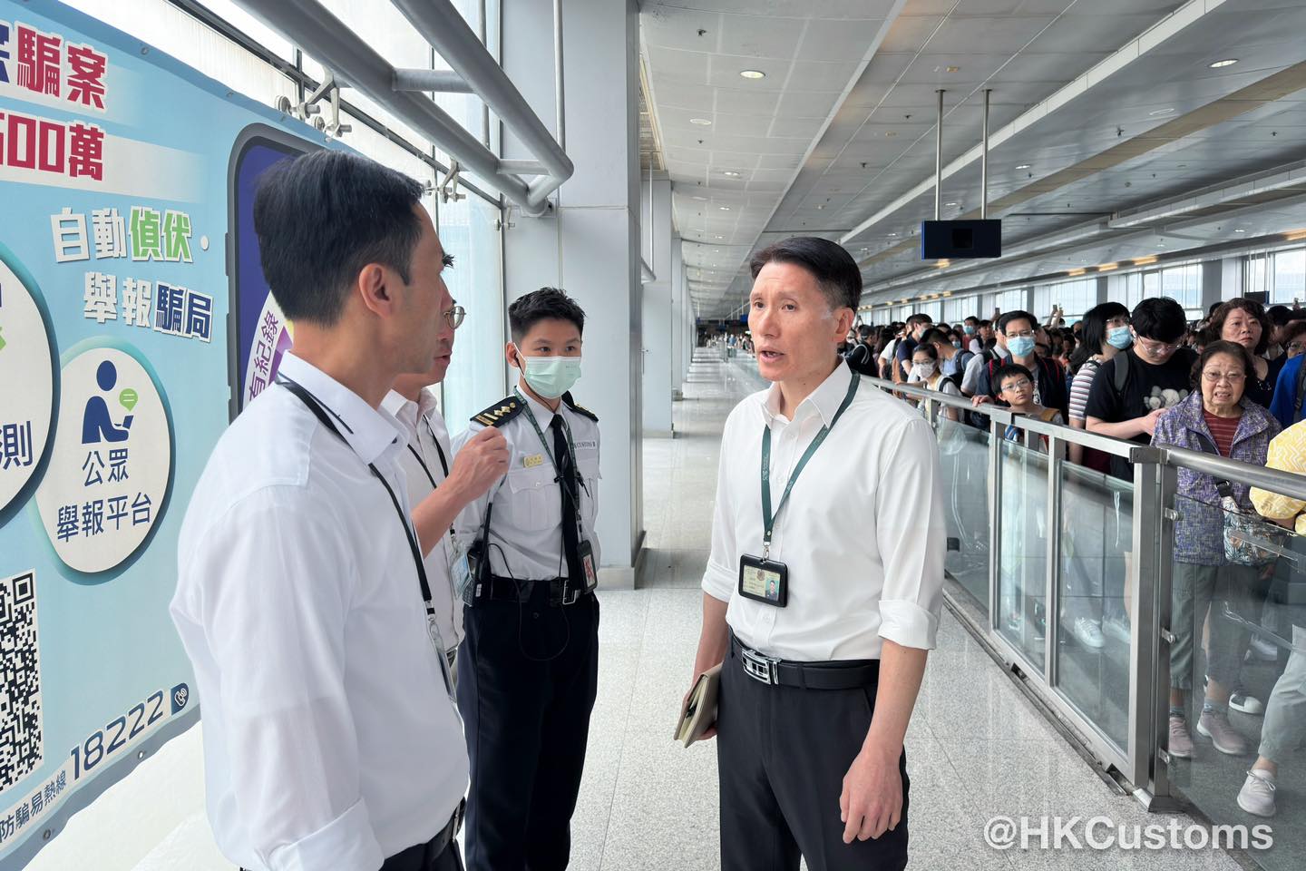 海關(guān)指,副關(guān)長(管制及執(zhí)法)胡偉軍與一眾口岸指揮官到港珠澳大橋、羅湖及落馬洲支線管制站視察口岸通關(guān)情況,並為緊守崗位的前線海關(guān)人員打氣。海關(guān)與各口岸相關(guān)部門已啟動跨部門聯(lián)合指揮中心,正密切監(jiān)察各陸路邊境管制站人流及車流情況,全力確保市民及旅客通關(guān)暢順。