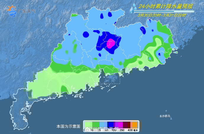 ● 3月30日,韶關(guān)、清遠(yuǎn)、雲(yún)浮、珠江三角洲市縣多雲(yún)間陰天有大雨到暴雨,局部大暴雨,粵西多雲(yún)有中雷雨,局部大雨或暴雨,其餘市縣多雲(yún),有雷陣雨。雷雨時(shí)局地伴有8-10級(jí)短時(shí)大風(fēng)和小冰雹。