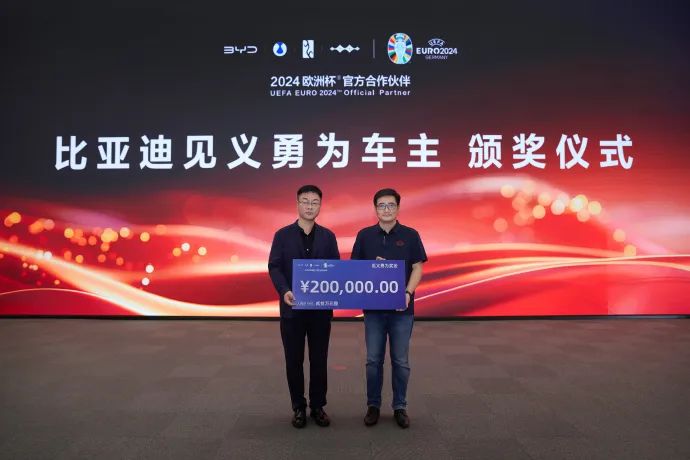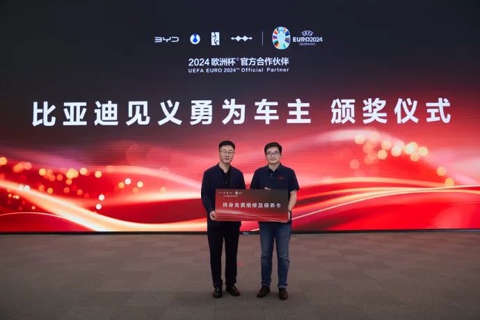 頒獎儀式上,比亞迪履行此前的承諾,為孫律師頒發(fā)了20萬稅後獎金及終身免費維修保養(yǎng)卡,並表示比亞迪將持續(xù)對車主的見義勇為行為進行嘉獎。