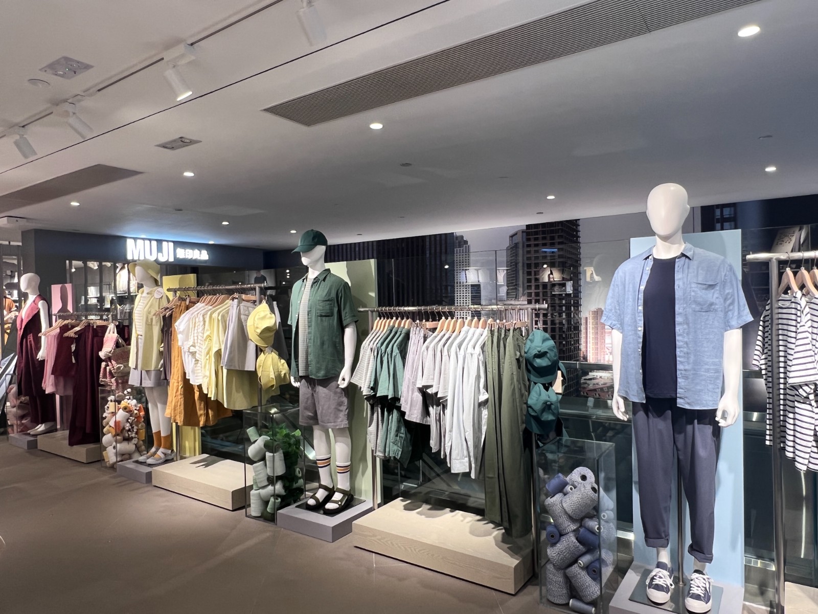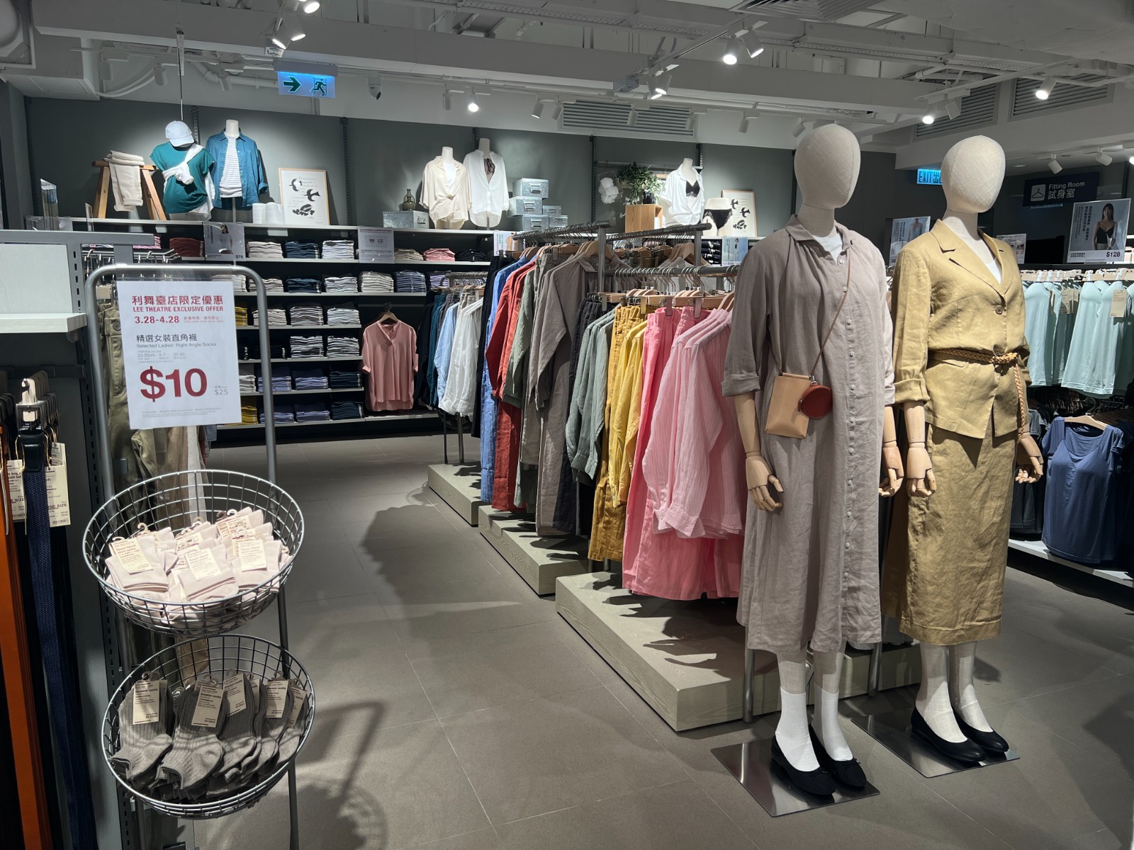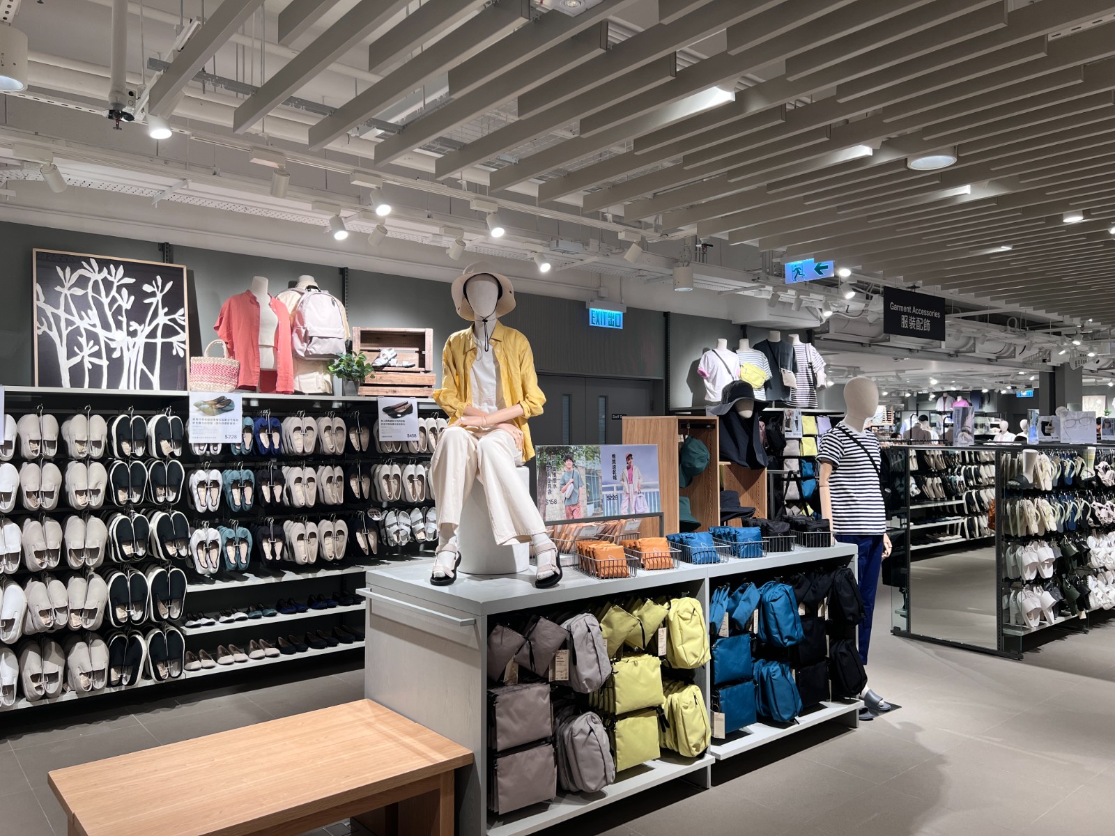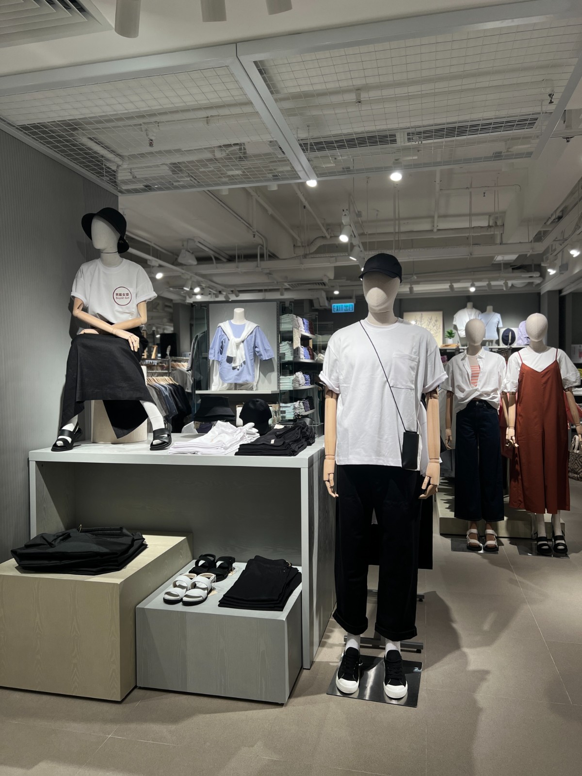 新店以服裝為重點(diǎn),提供齊全的服飾系列。店內(nèi)服裝的顏色、陳列的配搭、燈光及氛圍都經(jīng)過考量,採用冷色灰調(diào)為主,突出服飾的色彩及特性,服飾種類包括男裝、女裝、內(nèi)衣、居家服飾、鞋履、袋及配飾。