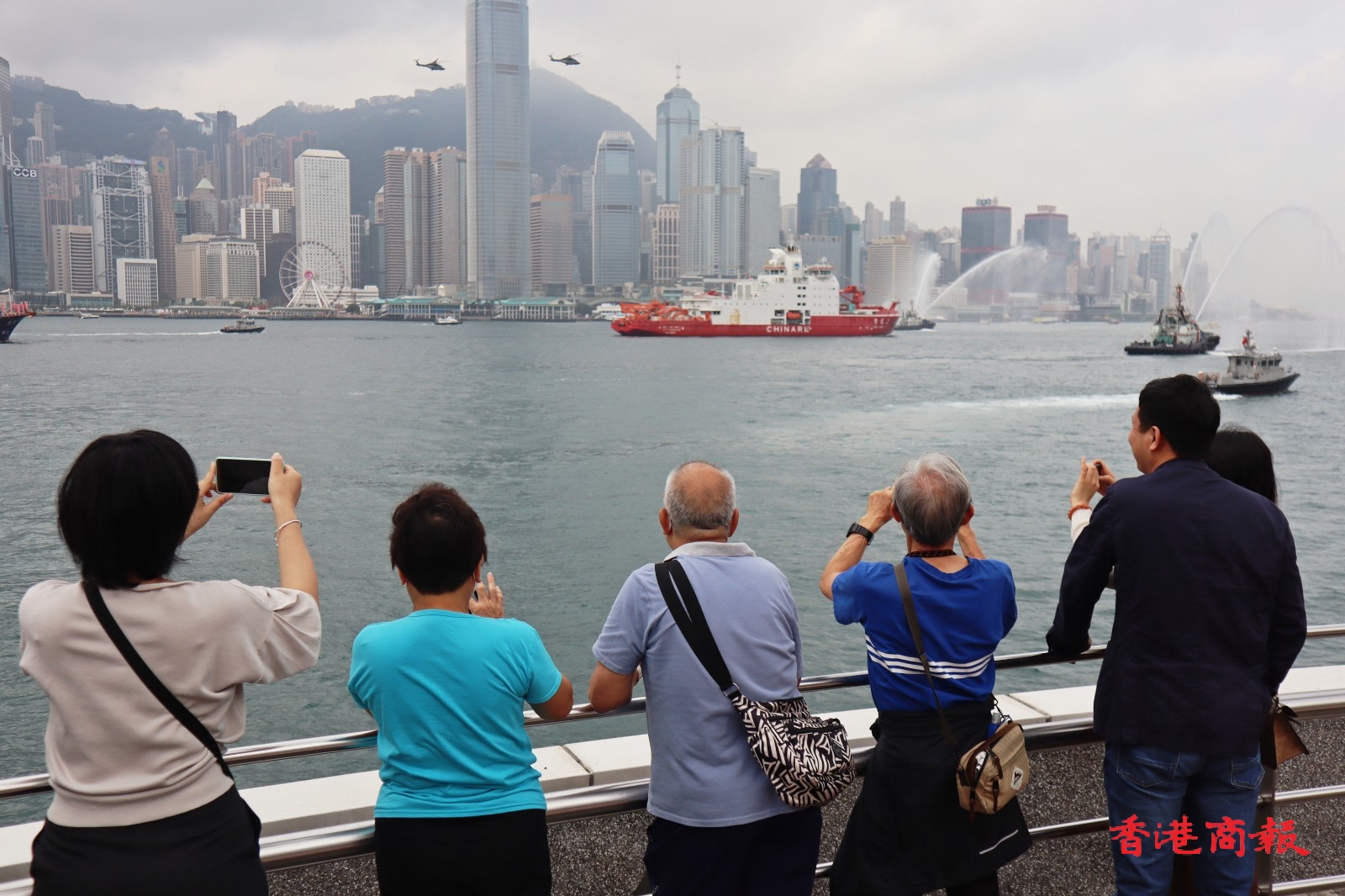 「雪龍2」緩緩駛?cè)刖S港,尖沙咀海傍不少市民遊客觀賞。記者 馮瀚文攝