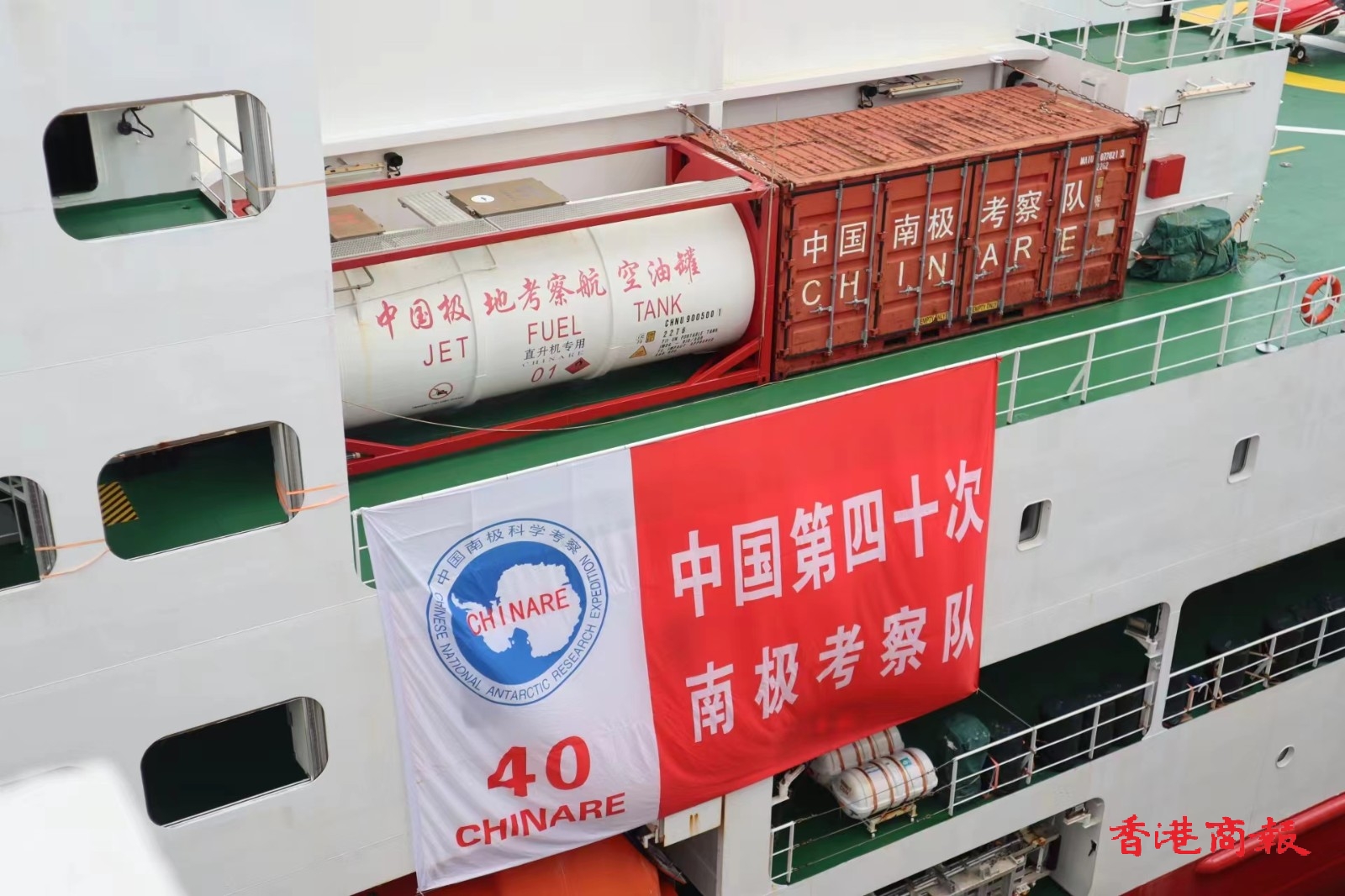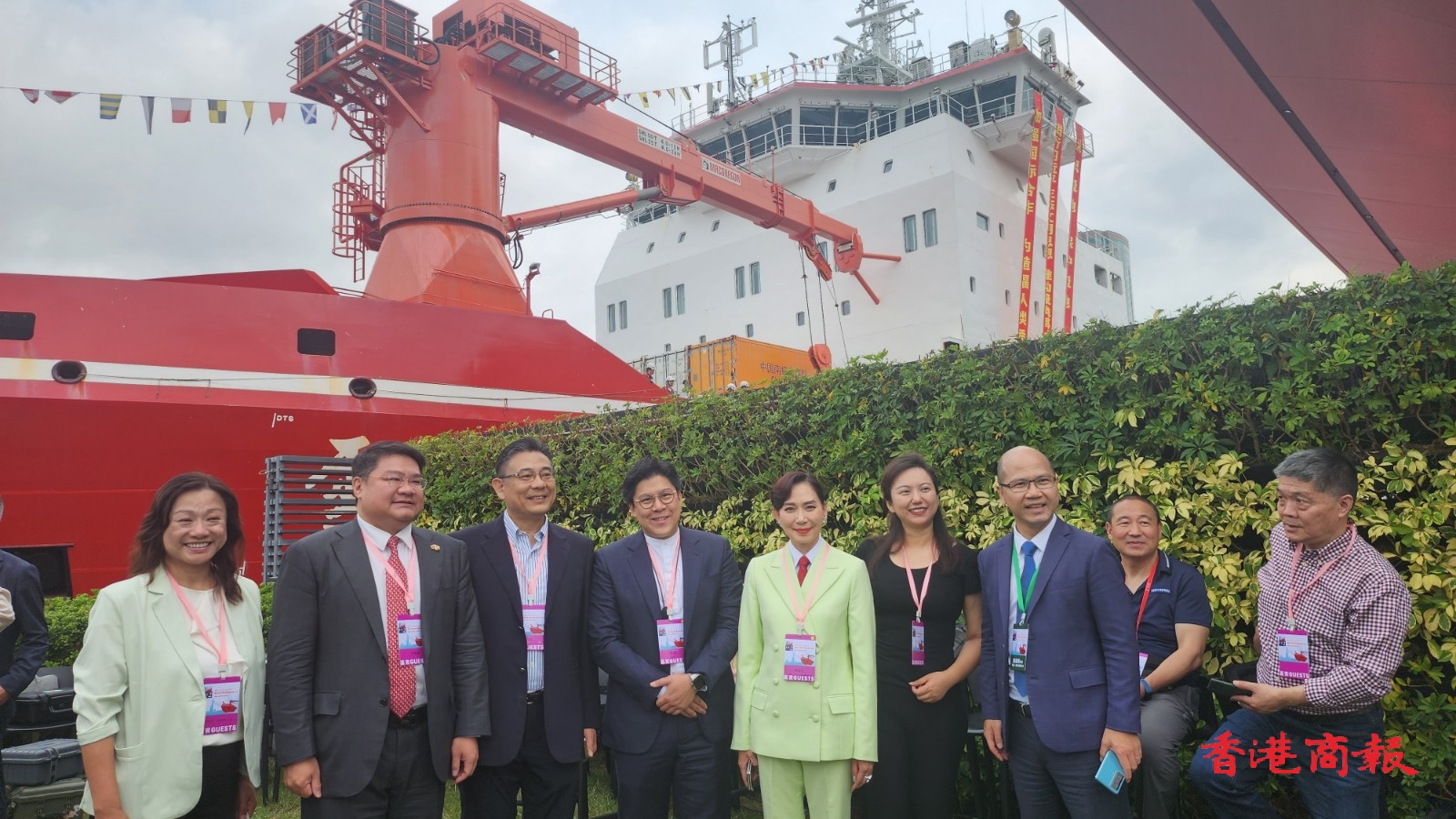 國產(chǎn)極地科考破冰船「雪龍2」號今日(8日)至12日訪港5日,港府早上在尖沙咀海運碼頭舉行盛大海陸空歡迎儀式,行政長官李家超、中聯(lián)辦主任鄭雁雄等人出席。(記者 木子 馮瀚文攝)