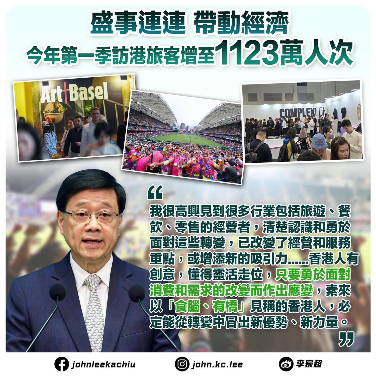 李家超指,今年第一季剛過去,見到香港經(jīng)濟(jì)正面擴(kuò)張,其中各項盛事帶動經(jīng)濟(jì)收益,3月及4月都是盛事不絕,帶來人氣和財氣。