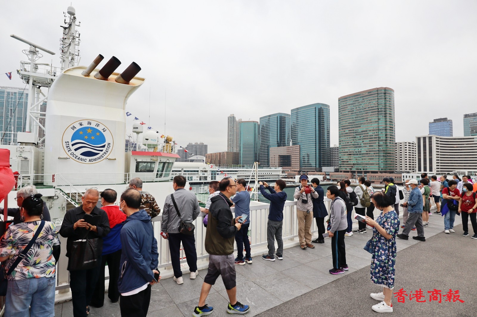 首批參觀者於早上8時(shí)半在尖沙咀海運(yùn)郵輪碼頭登船,有30分鐘的參觀時(shí)間,上船前要通過(guò)安檢。不少上船參觀的市民、學(xué)生都表示很高興、興奮,是一次難得的體驗(yàn);亦有不少?zèng)]能上船的市民、遊客只能在碼頭觀看。