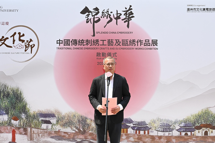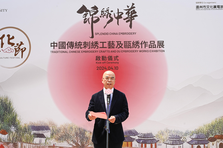 浙江工貿(mào)職業(yè)技術(shù)學院副校長汪焰教授致辭時表示,非常榮幸受邀在理大展出「甌綉」這一國家級非物質(zhì)文化遺產(chǎn),希望通過展出和工作坊活動,讓更多香港朋友親身感受到中華文化的獨特魅力和時代價值。