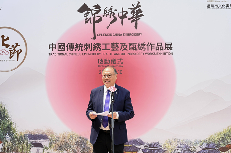 張志宏稱,是次展覽匯集甌綉等全國各地優(yōu)秀刺綉作品,融入科技力量,創(chuàng)新展示的方式,弘揚中華文化及傳統(tǒng)工藝的魅力。衷心希望溫州、香港兩地以此次文化交流活動為契機,開啟兩地合作交流的新模式,促進溫州與香港「人更相親、文更相依、心更相通」,也希望兩地以中華優(yōu)秀傳統(tǒng)文化為紐帶,增進文化交流互鑒,推動城市協(xié)同發(fā)展。