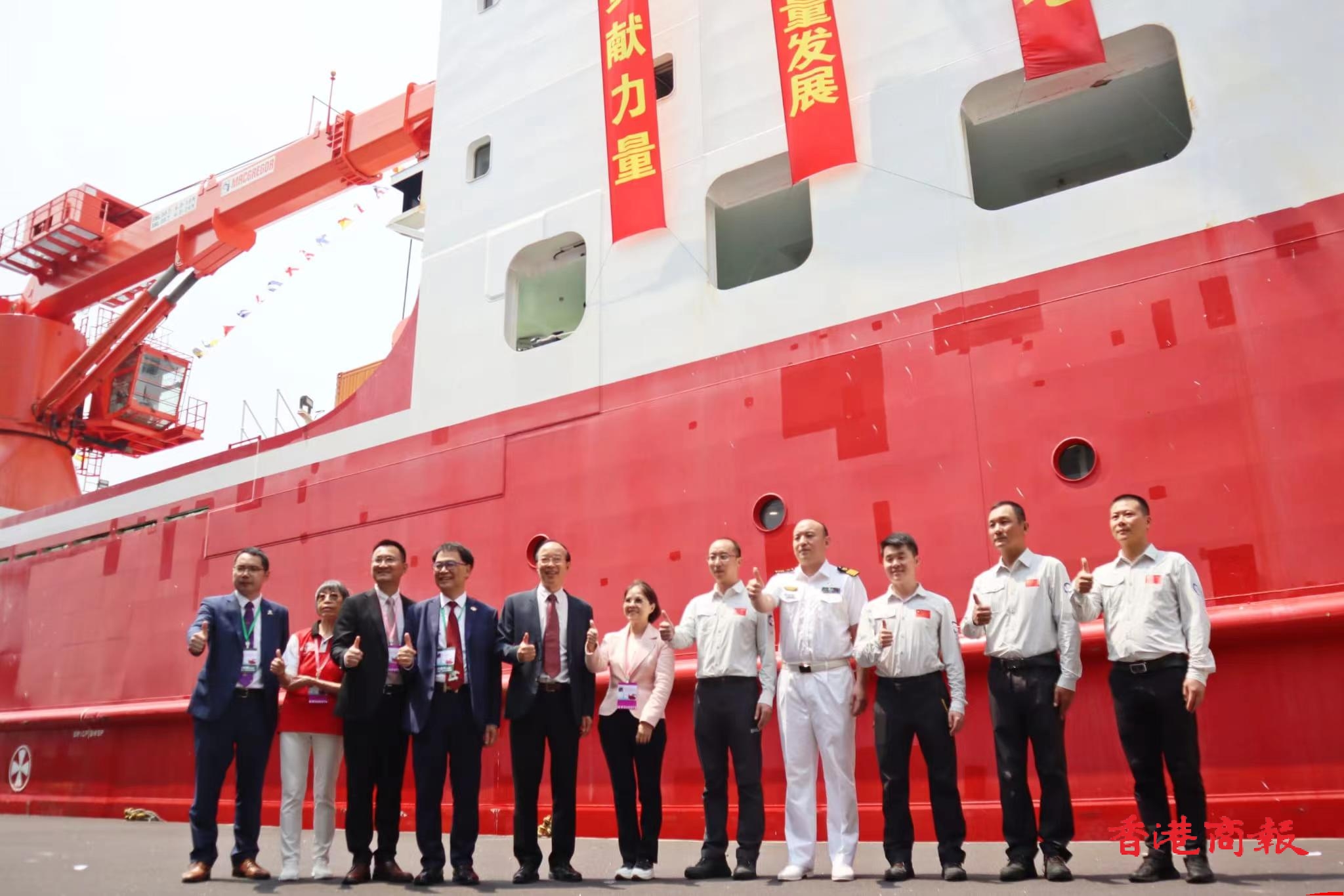 下午2時(shí),「雪龍2」號(hào)正式離開尖沙咀海運(yùn)碼頭,5位香港代表揮手致意,歡送船隻離港。