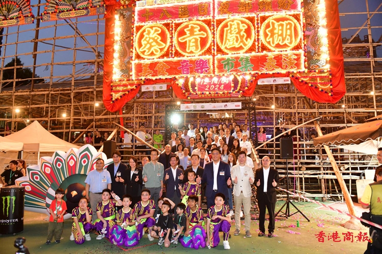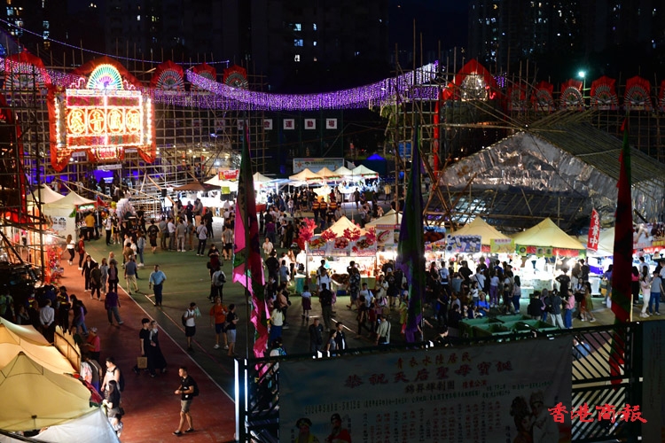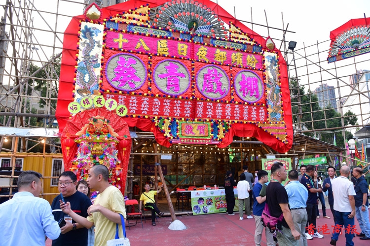 「18區(qū)日夜都繽紛@葵青戲棚」由本月12日至14日一連3日在青衣體育會(huì)運(yùn)動(dòng)場(chǎng)舉行,場(chǎng)內(nèi)有超過40個(gè)特色攤位,售賣地道小食和手工藝品。場(chǎng)地亦設(shè)有傳統(tǒng)大型花牌和由竹搭建的戲棚,慶賀日夜繽紛的同時(shí),亦祝賀當(dāng)區(qū)居民每年都會(huì)在此舉辦的真君誕及天后誕。