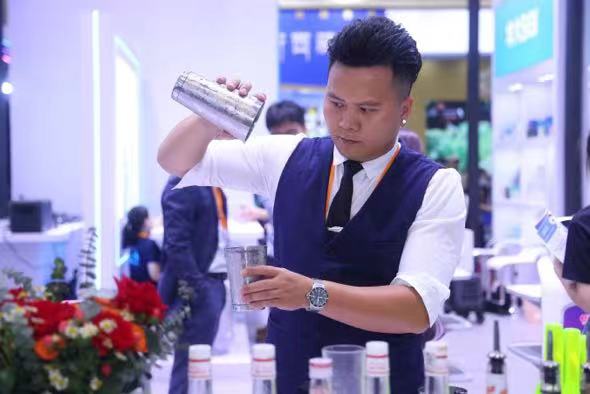 開(kāi)展首日,深圳館活動(dòng)精彩異常?!干蠲饧瘓F(tuán)的花式調(diào)酒+機(jī)器人伴舞」,拉開(kāi)了深圳館開(kāi)展儀式。迎賓機(jī)器人克魯澤扭動(dòng)著身體,揮舞著小手,歡迎來(lái)自全球各地的客商。
