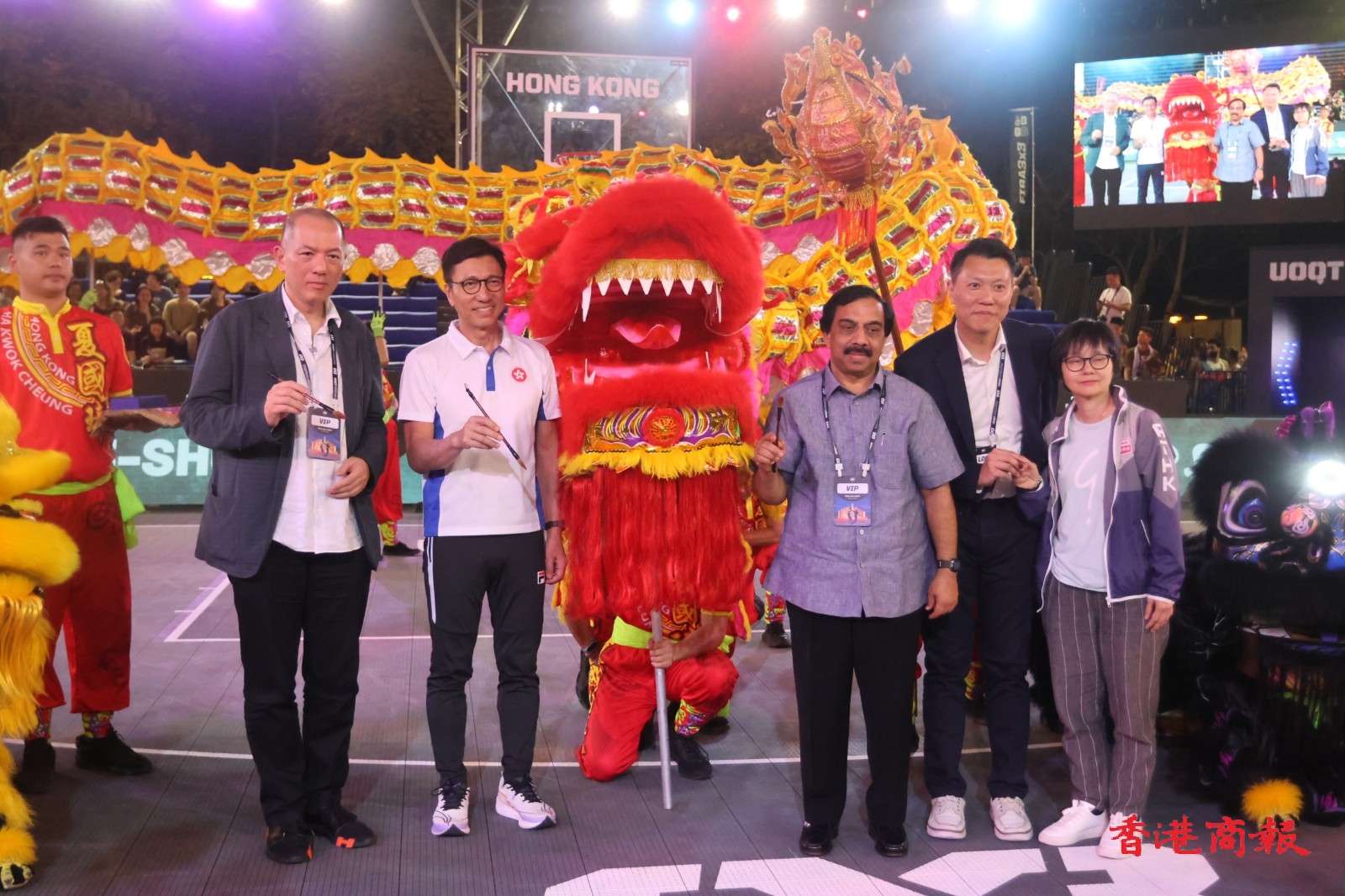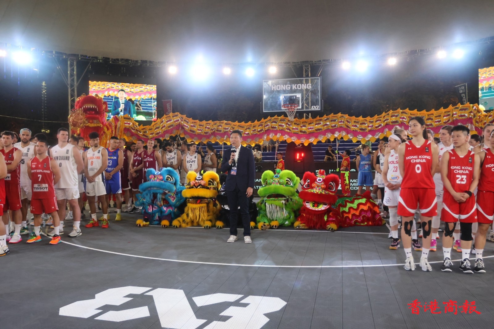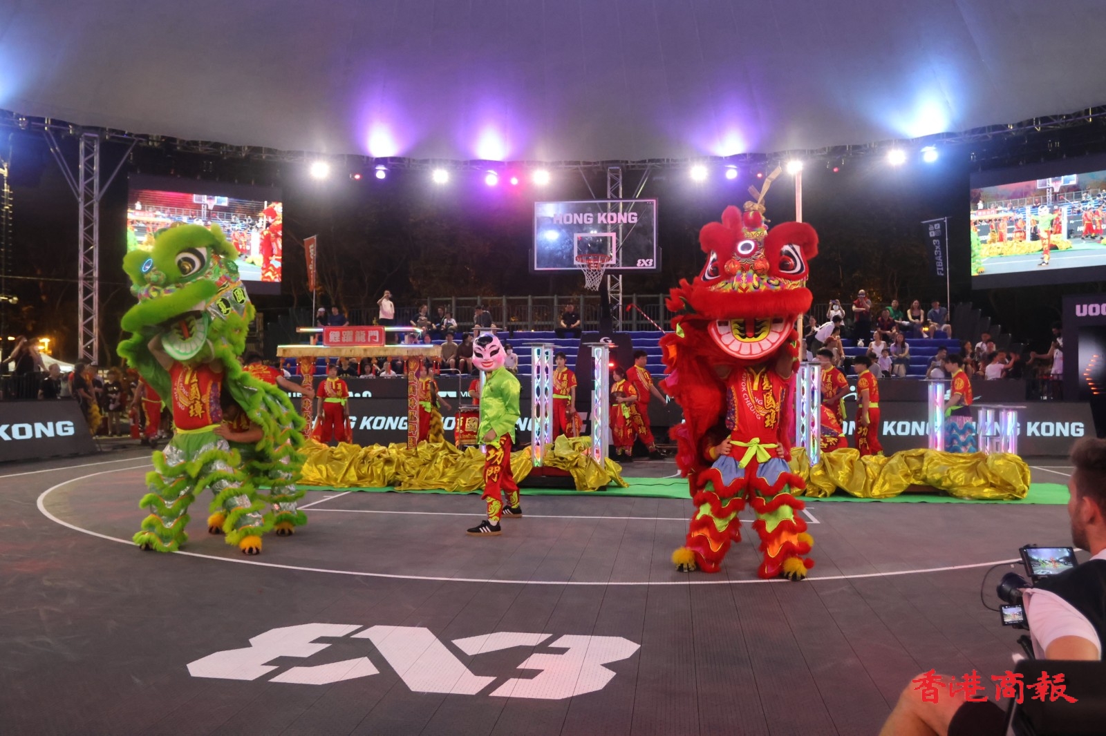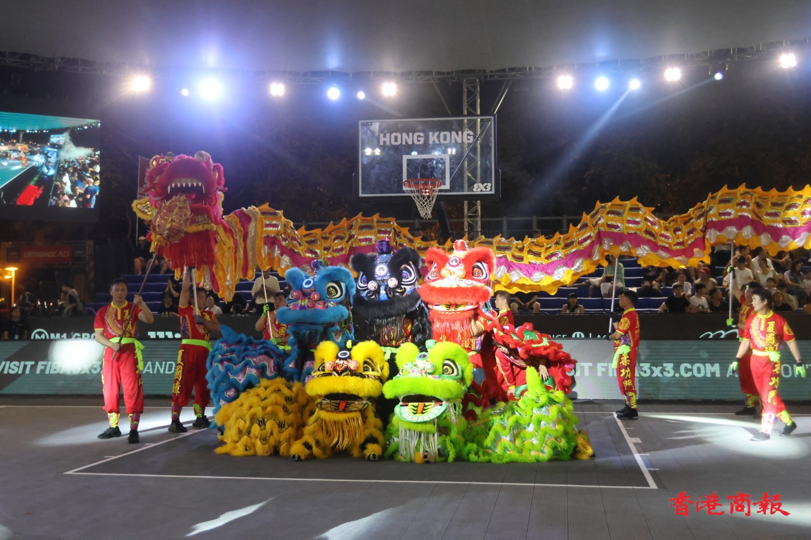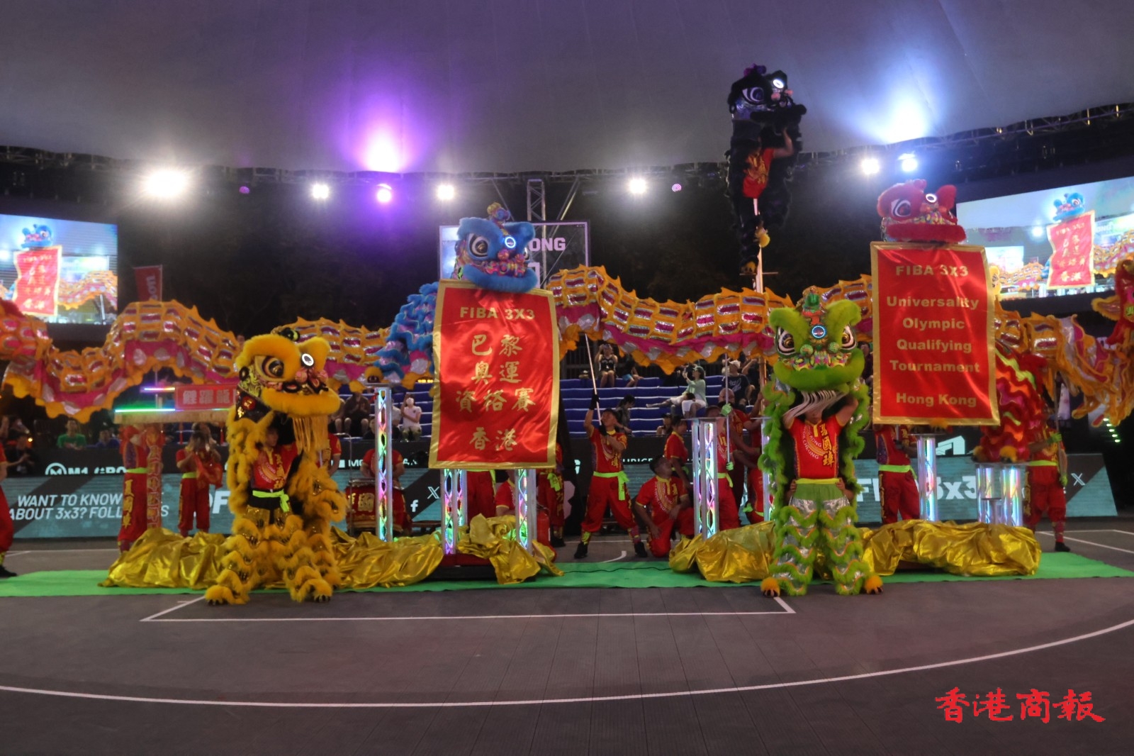 「FIBA 3X3巴黎奧運資格賽」周六(13日)在維園上演次日賽事,晚上舉行的賽事開幕儀式相當精彩,先有6位芭蕾小女孩跳舞,接住由彈跳運動員獻技,之後就有醒獅舞龍匯演。
