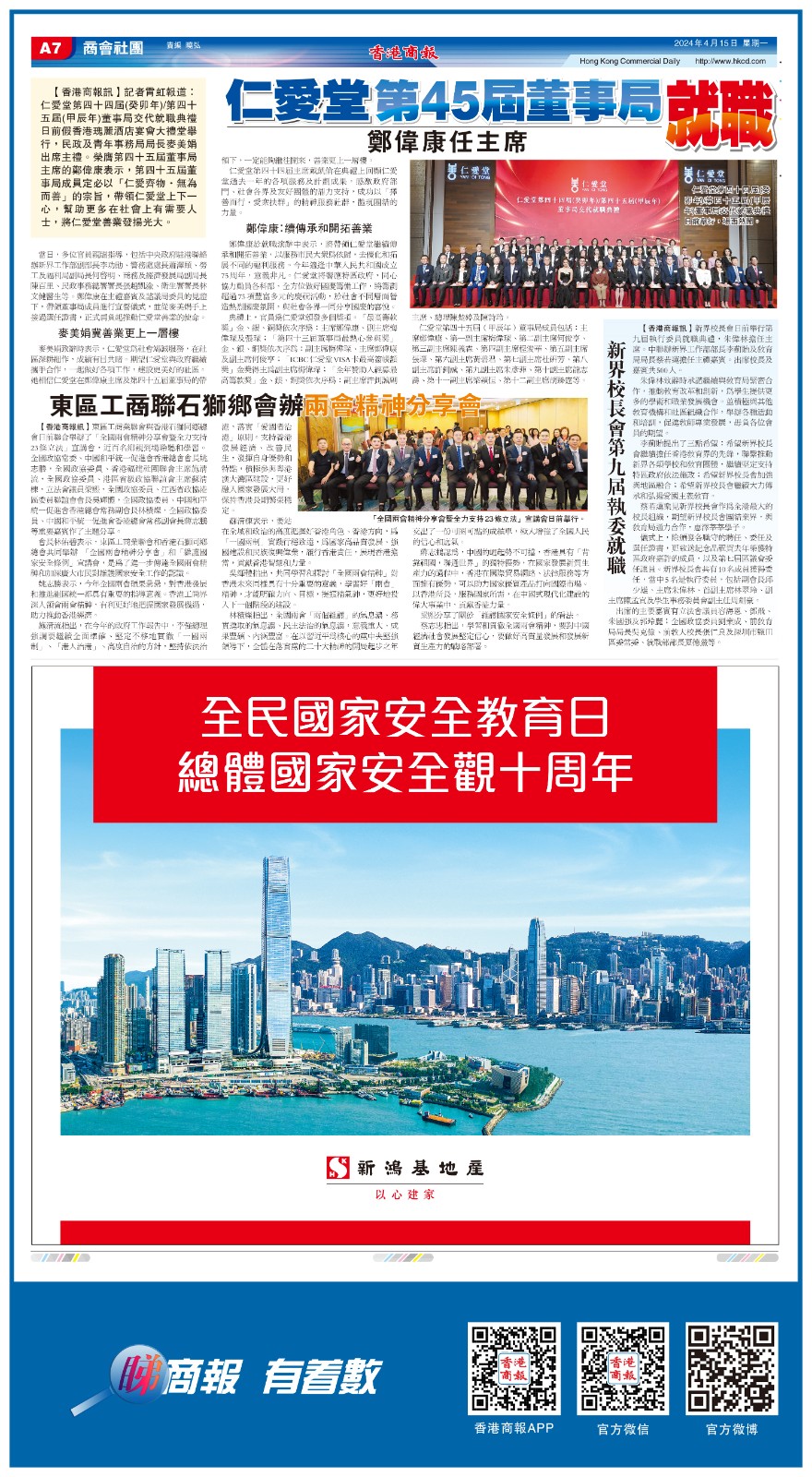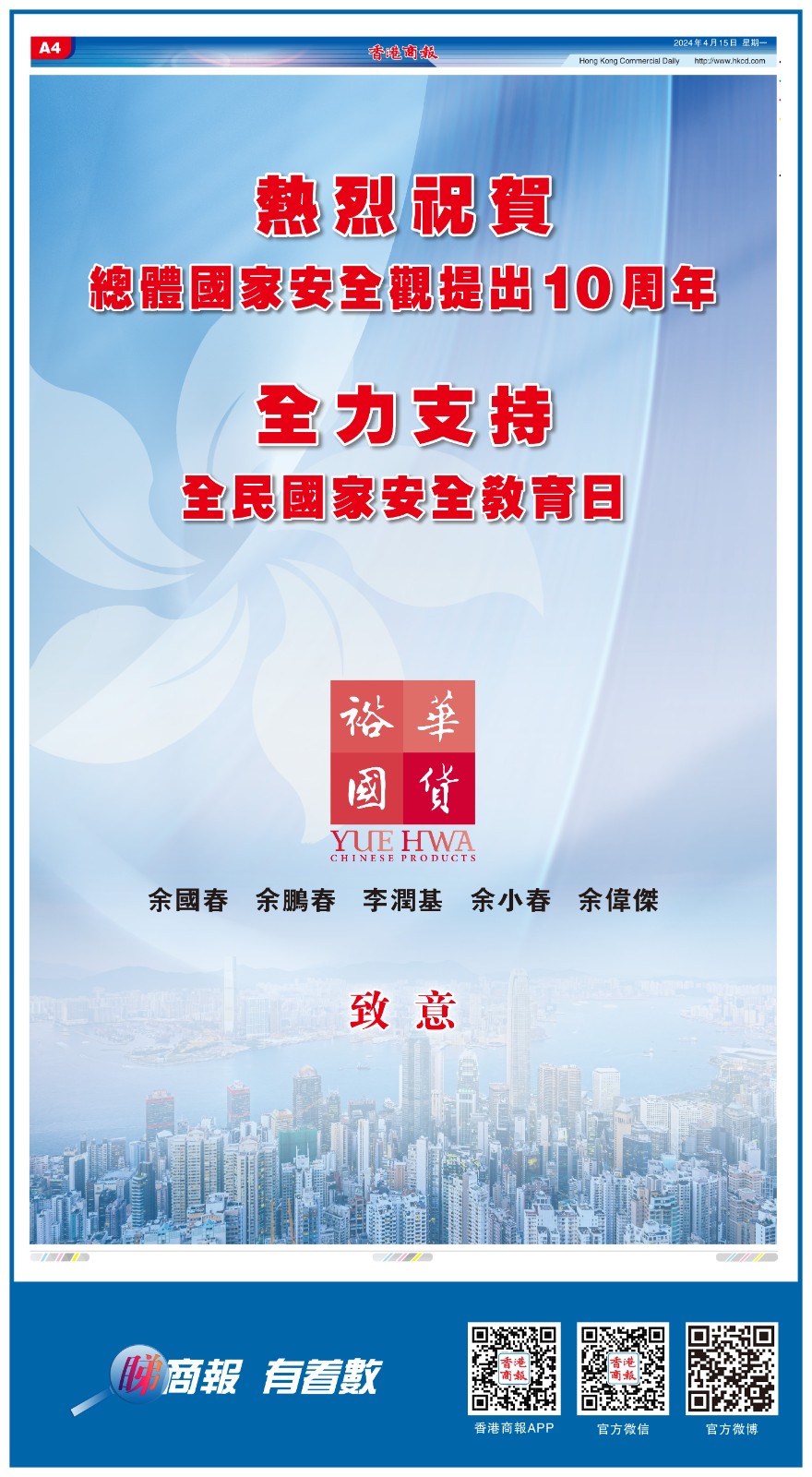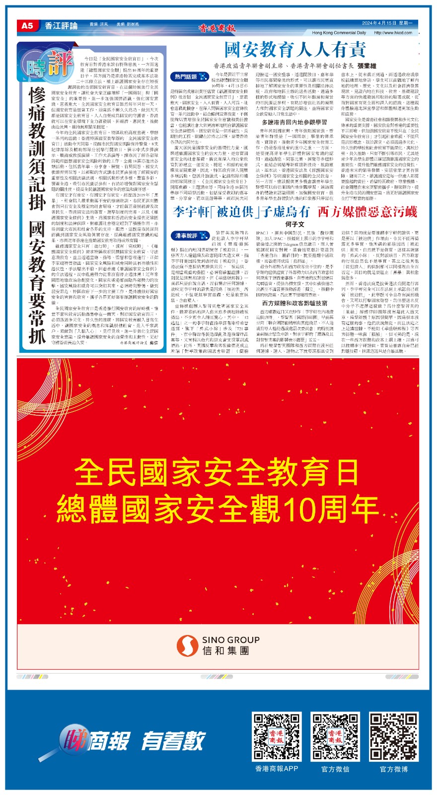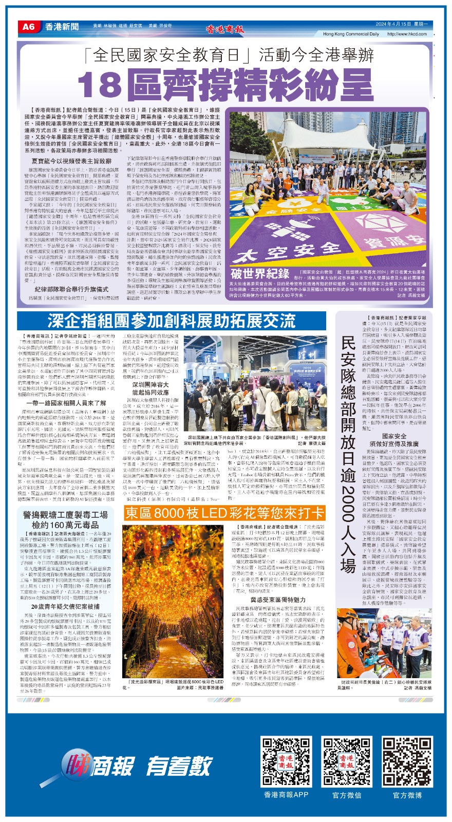 除頭版外,香港商報今天推出十餘個版面,來自香港各行各業(yè)的企業(yè)、社團,紛紛登報,慶??傮w國家安全觀提出10周年,並全力支持「全民國家安全教育日」!一起來睇睇↓