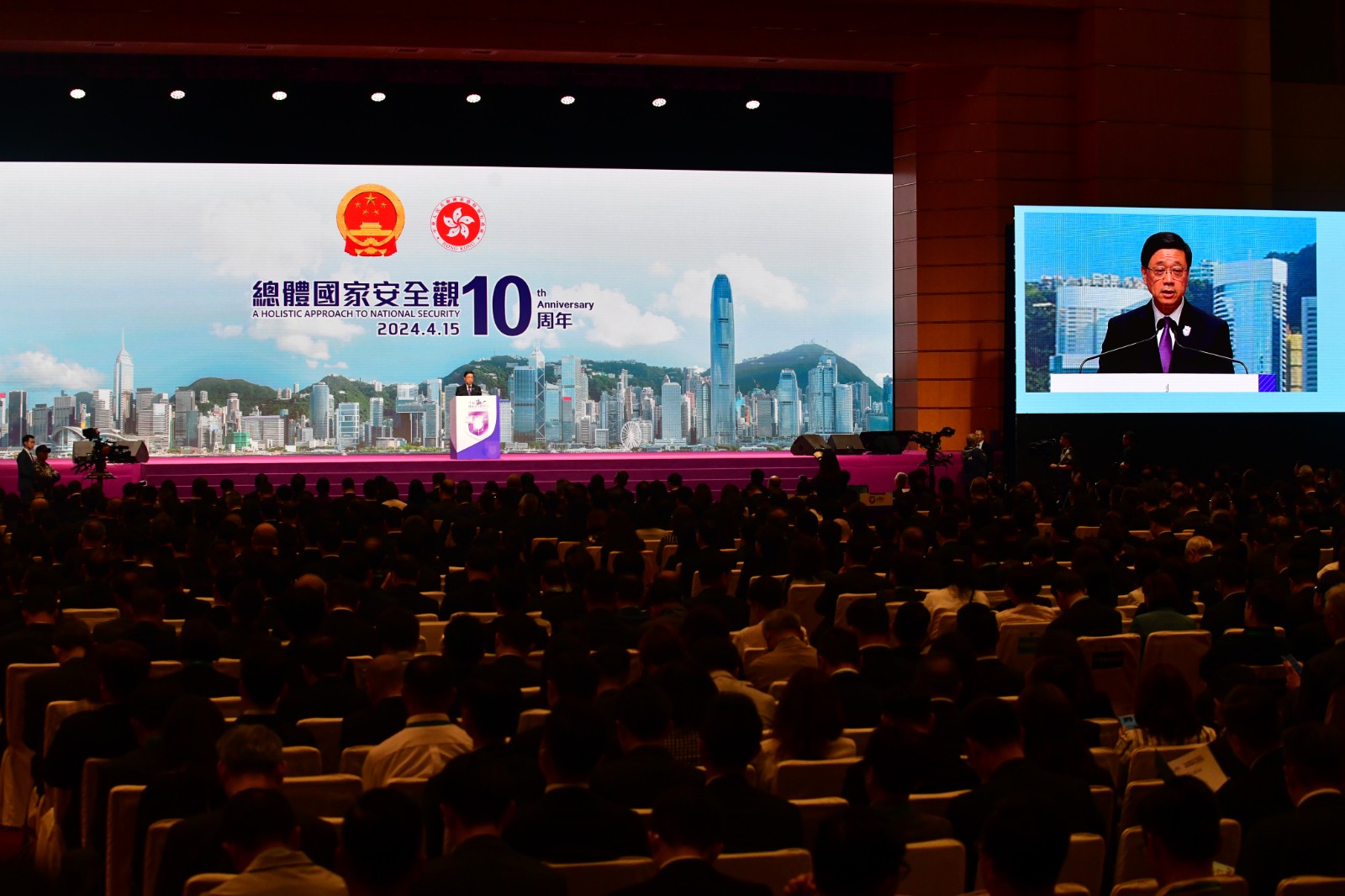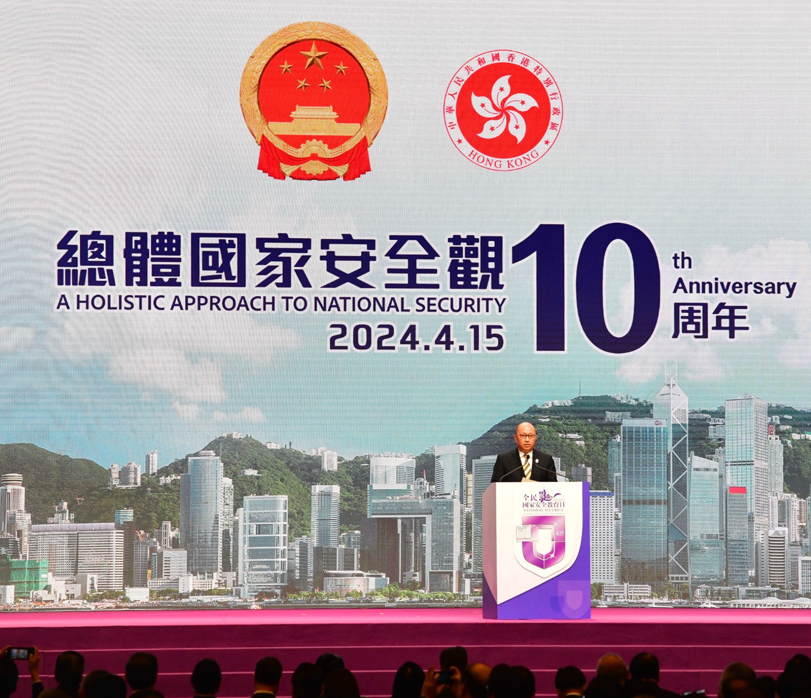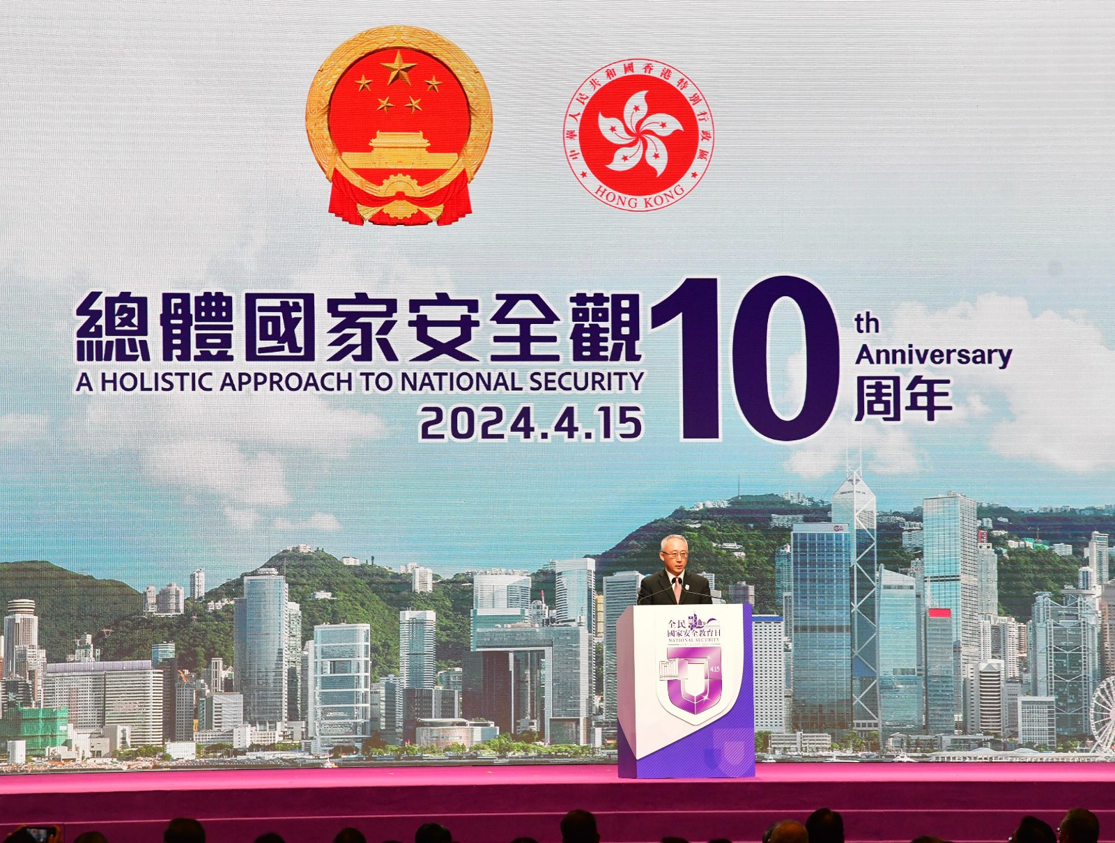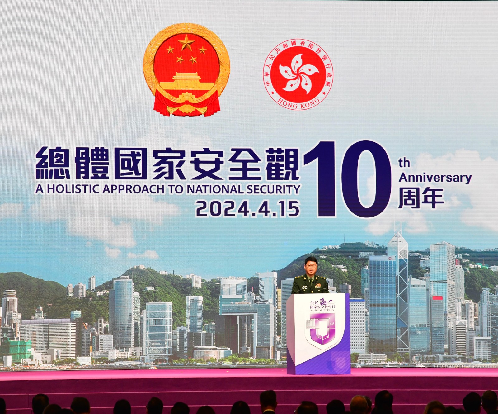 香港特區(qū)行政長(zhǎng)官、香港特區(qū)國(guó)安委主席李家超,中央政府駐港聯(lián)絡(luò)辦主任、香港特區(qū)國(guó)安委國(guó)家安全事務(wù)顧問鄭雁雄,中央駐港國(guó)安公署署長(zhǎng)董經(jīng)緯、外交部駐港公署署理特派員李永勝、解放軍駐港部隊(duì)副政治委員王兆兵少將等出席「全民國(guó)家安全教育日」開幕典禮並擔(dān)任主禮嘉賓。