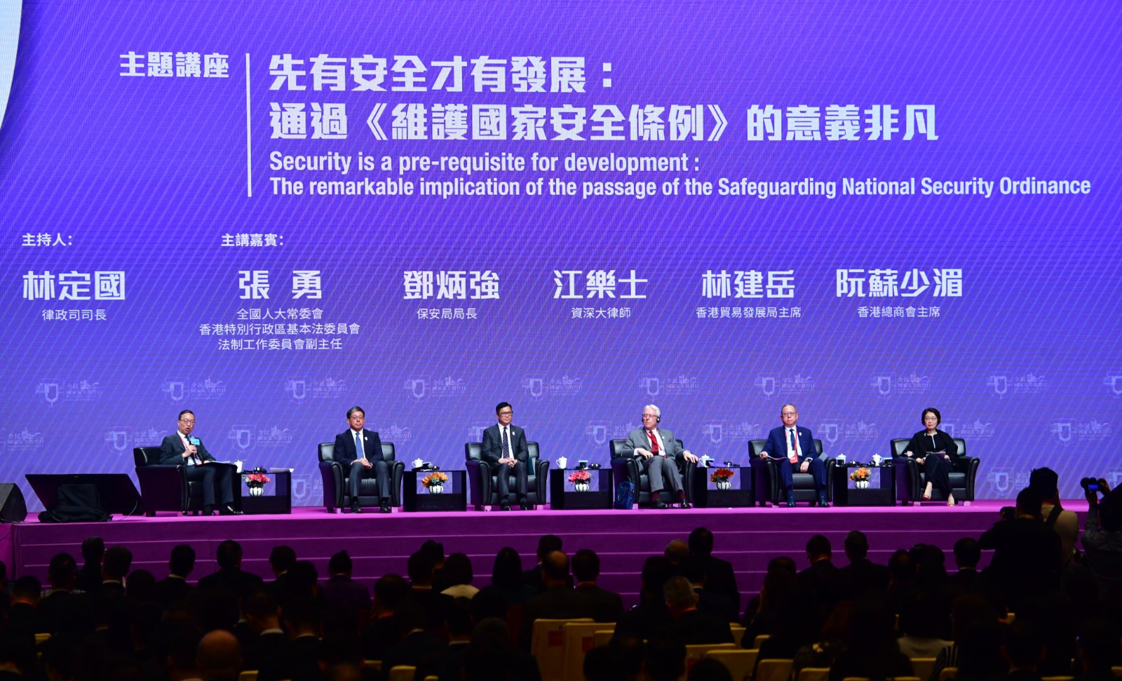 今天(15日)是《香港國(guó)安法》實(shí)施後的第四個(gè)「全民國(guó)家安全教育日」,香港特別行政區(qū)維護(hù)國(guó)家安全委員會(huì)(香港特區(qū)國(guó)安委)上午在香港會(huì)議展覽中心舉辦開幕典禮。中央港澳工作辦公室主任、國(guó)務(wù)院港澳事務(wù)辦公室主任夏寶龍率領(lǐng)港澳辦領(lǐng)導(dǎo)班子全體成員在北京以視頻連線方式出席,包括港澳辦常務(wù)副主任周霽,港澳辦副主任王靈桂、農(nóng)融等。夏寶龍主任擔(dān)任主禮嘉賓,並發(fā)表主旨致辭。