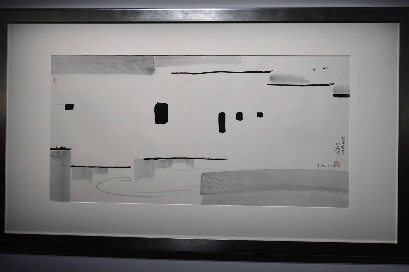 在色彩學(xué)上,黑白灰三色沒有彩度;若以科學(xué)物理角度,黑白甚至不是顏色,只是光線的明暗度??此票浞ξ兜暮诎祝趨枪谥械墓P下卻充滿了「溫度」。香港藝術(shù)館館長(至樂樓)鍾婉嫻對香港商報記者表示,是次焦點展品、鎮(zhèn)館之寶《雙燕》是吳冠中的代表作:「畫作描繪了江南景色,吳冠中曾表示故鄉(xiāng)江南的素淨(jìng)牆身讓自己想起宣紙,因此他將白牆放進(jìn)畫中,呈現(xiàn)橫直、黑白對比之美,巧妙之處在畫作的上方加了一雙燕子,表達(dá)出他對故鄉(xiāng)的情懷,為作品加添絲絲暖意?!贯醽?,吳氏創(chuàng)作另一幅畫作《憶江南》,作為《雙燕》的延伸,是次會同時展出。該畫的景物被簡化成幾條橫線和幾個黑點,依然配上一對點睛的燕子,但從具象到接近抽象的創(chuàng)作,更能感受到藝術(shù)家對故鄉(xiāng)情感的昇華。