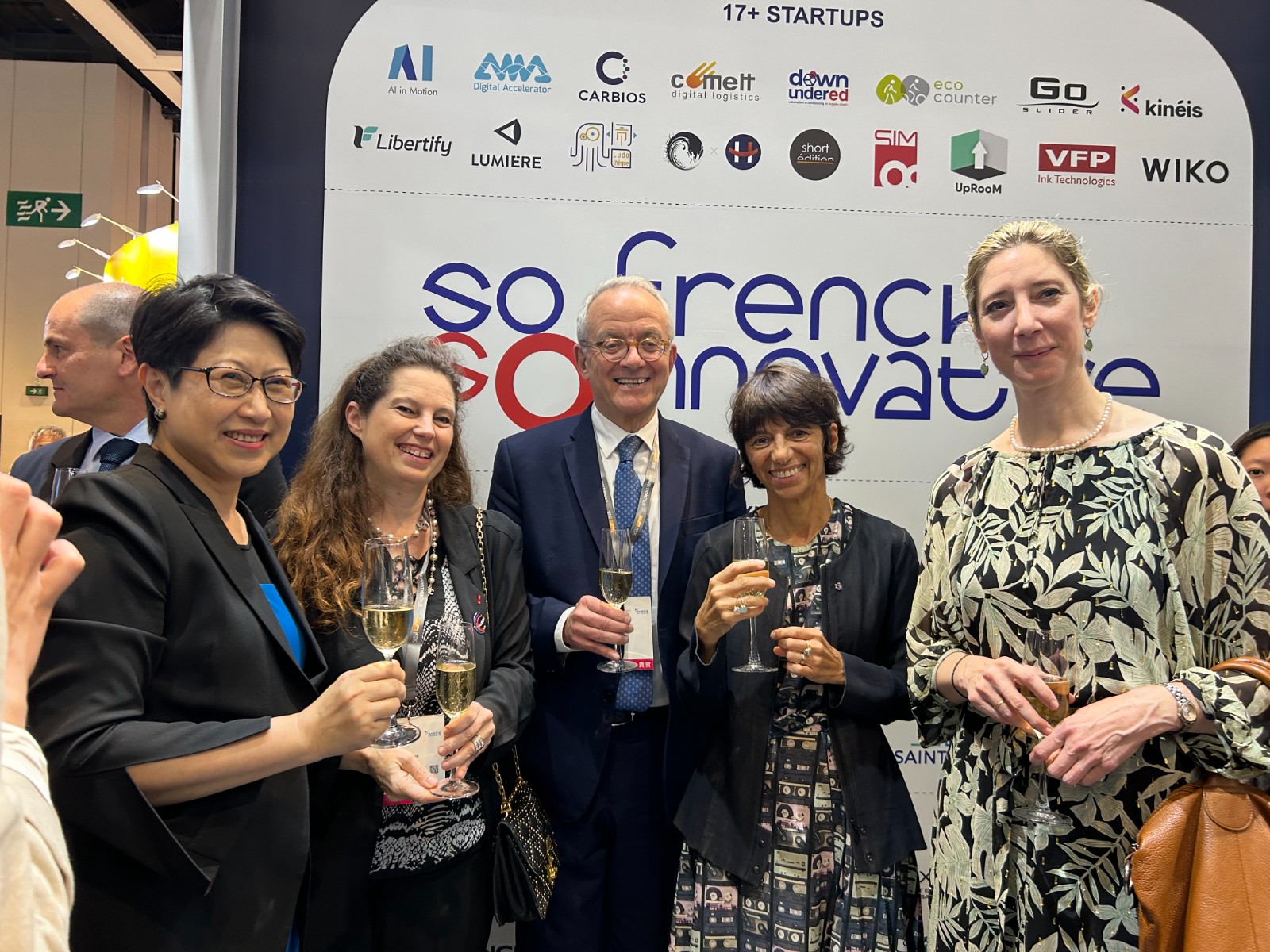 法國駐港總領事杜麗緹(Christile Drulhe)(圖右一)表示,今年是中法關係的重要里程碑,包括法中建交60周年、法國駐香港外貿顧問委員會聯(lián)合法國駐港澳總領事館、法國商務投資署與香港法國工商會共同發(fā)起「非常法國 非凡創(chuàng)新(So French So Innovative)」計劃面世10周年。此外,今年也是巴黎奧運年,這項盛事將於7月26日至8月11日舉行。