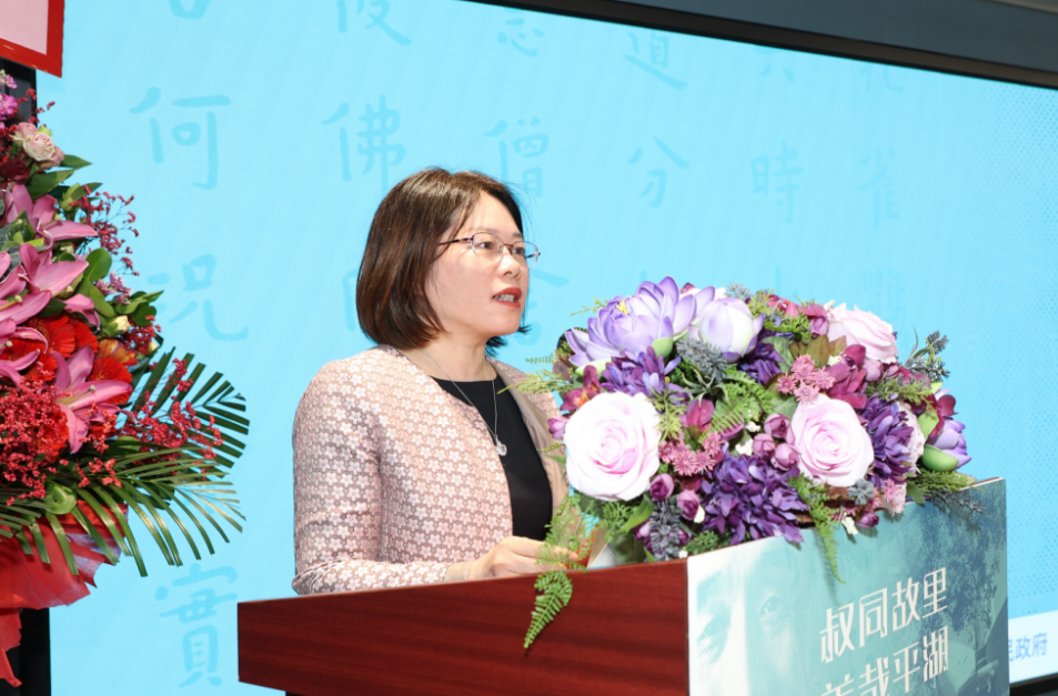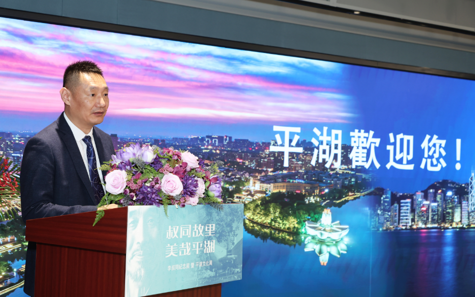 平湖市委常委沈志林向觀眾介紹了李叔同對故里的深情厚意,「在他的眾多署名中,『平湖』二字始終是伴隨他一生的情結(jié)符號。」沈志林感慨表示。他也介紹了平湖的歷史文化與城市發(fā)展,並指出:「李叔同『勇猛精進(jìn)』的人格精神,激勵著新時代平湖人在『大有可為』的新時代裏『大有作為』」。