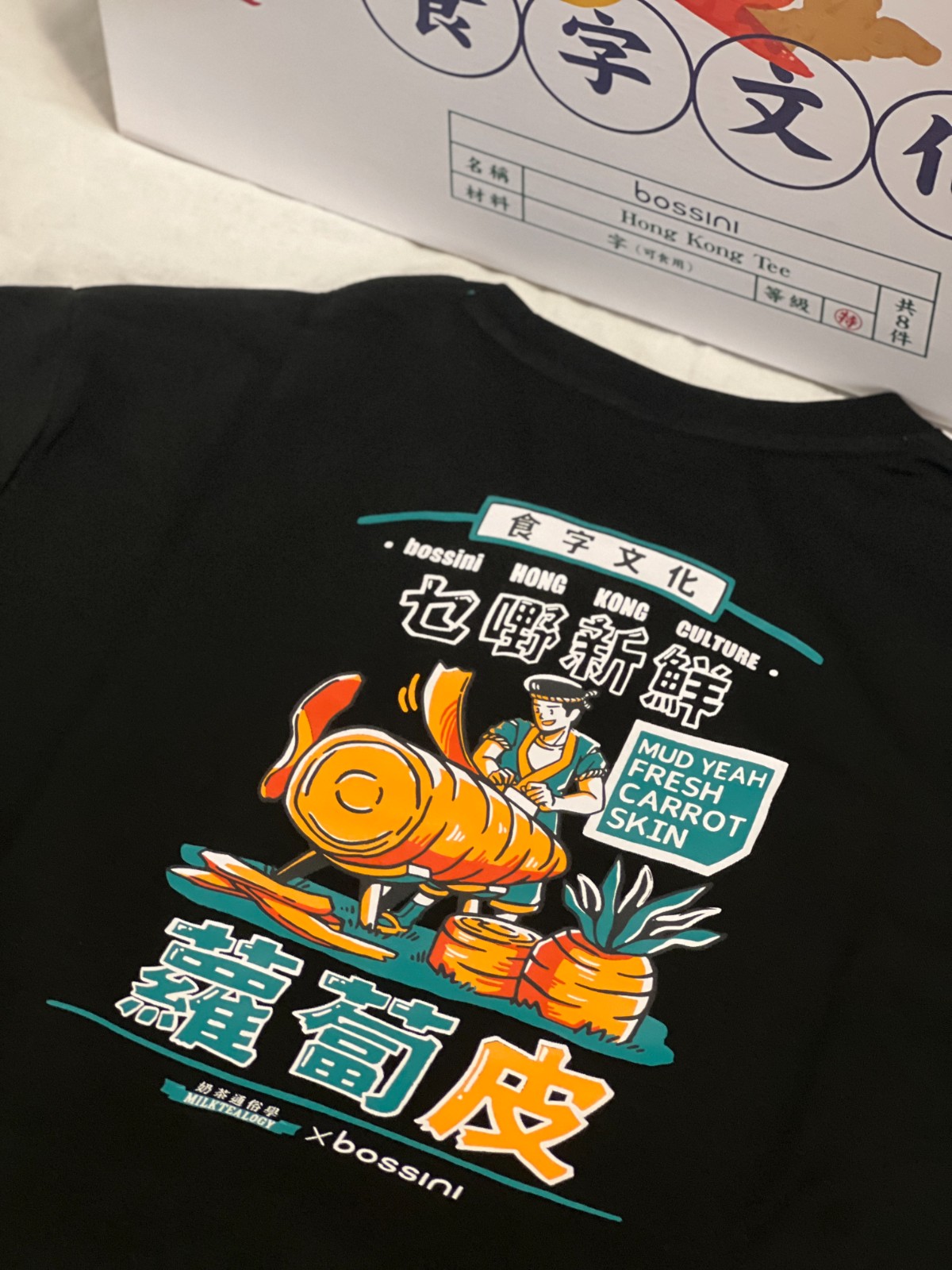 食字文化系列T恤的正面是食物logo,背面則是插畫故事,HK$239/一件。