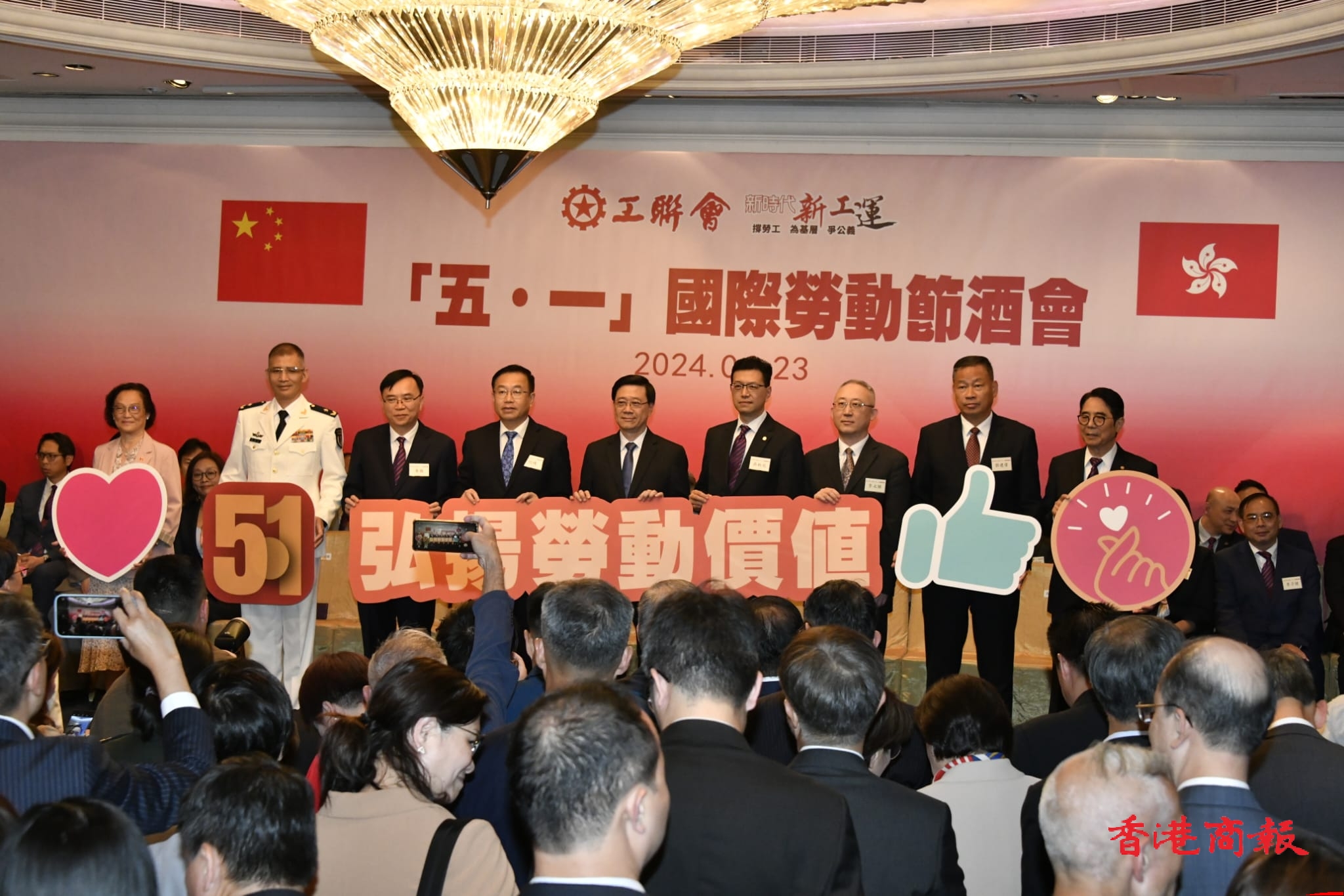 李家超、何靖、維護(hù)國家安全公署聯(lián)絡(luò)局局長鄧建偉、外交部駐港特派員公署副特派員李永勝、解放軍駐香港部隊副司令員譚志偉等人出席「五·一」國際勞動節(jié)酒會。工聯(lián)會會長吳秋北、理事長黃國等領(lǐng)導(dǎo)層亦有出席。