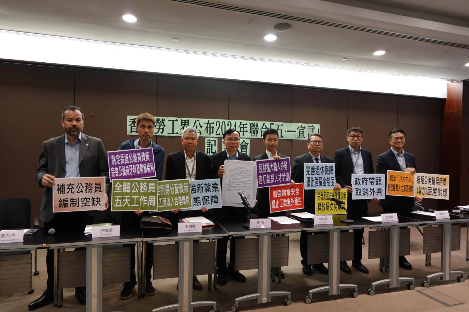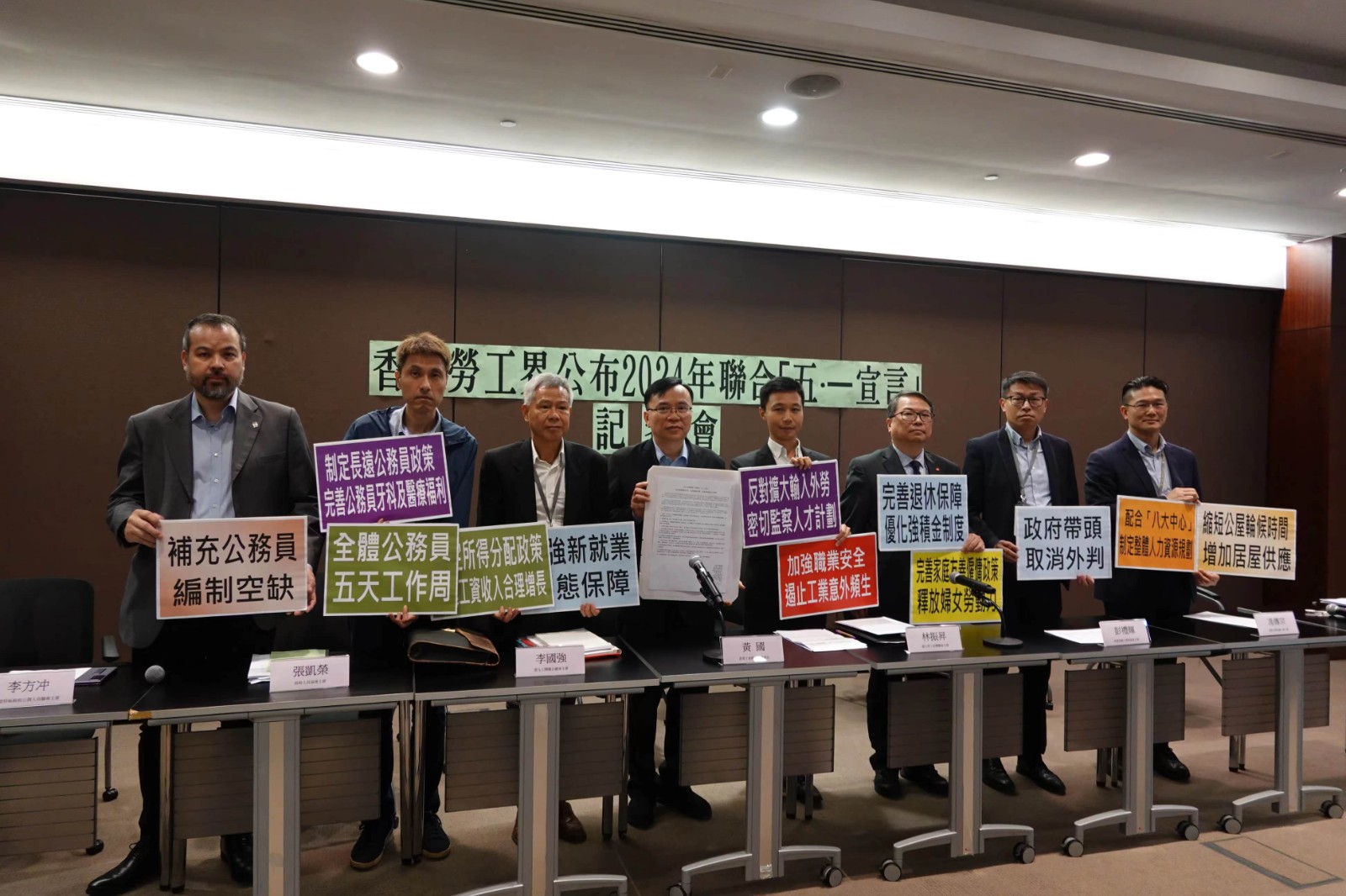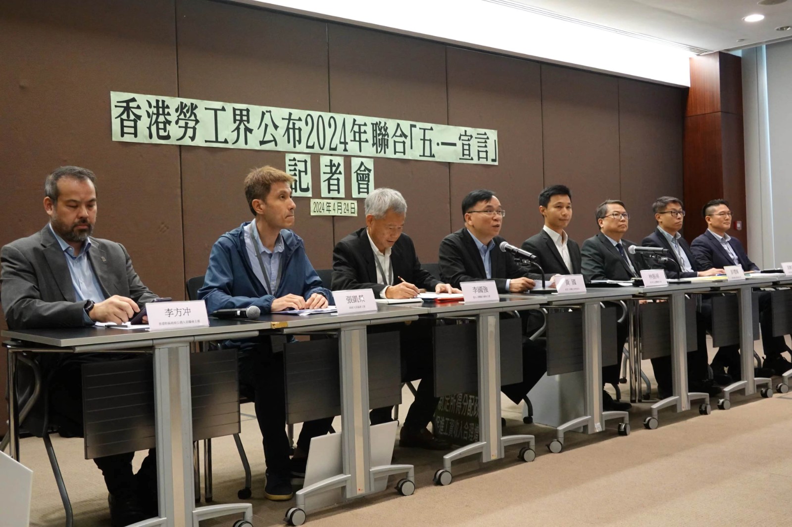 頂圖:香港勞工界公布聯(lián)合「五?一宣言」。林駿強(qiáng)攝