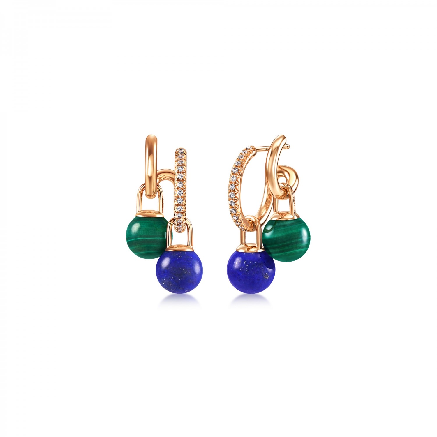 耳環(huán)以18K玫瑰金鑽石鎖頭與半寶石球形組合而成,半寶石的活動式設(shè)計,令耳環(huán)能夠自由擺動,為設(shè)計增添佻皮感。