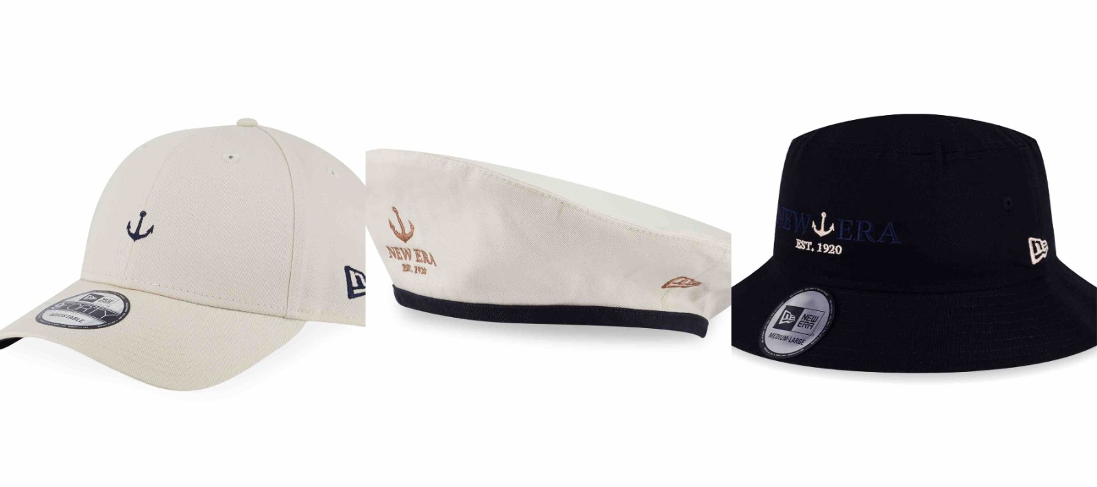 SAILOR CLUB 系列,則有 9FORTY、BERET 和 BUCKET 01,設(shè)計以船錨圖案和「NEW ERA EST.1920」文字標(biāo)記為主題,主要配色為海軍藍(lán)色、白色和奶白色。各種帽款風(fēng)格多樣,具有不同的水手特色,令夏日穿搭風(fēng)格更加百變型格。