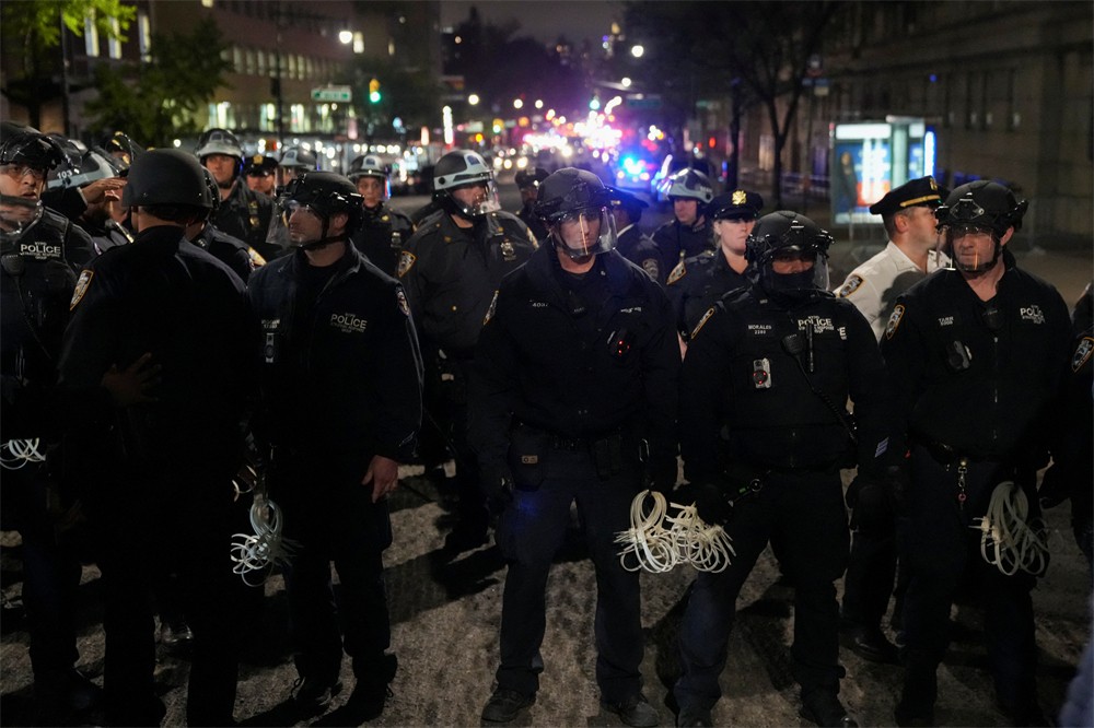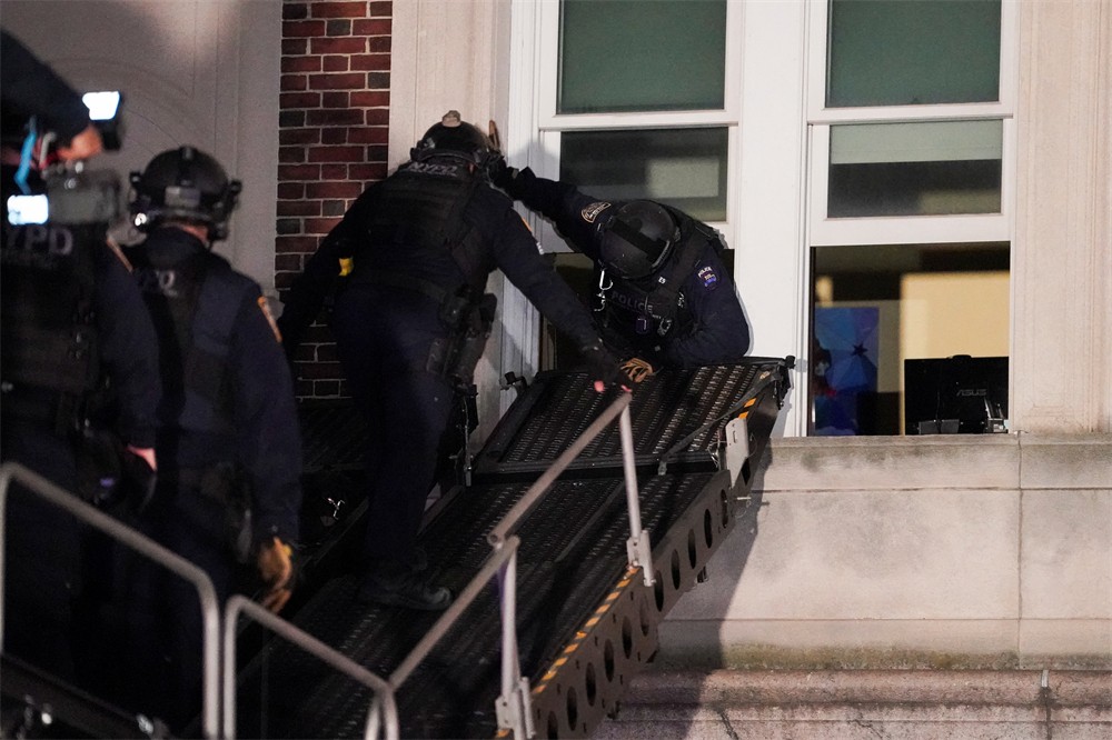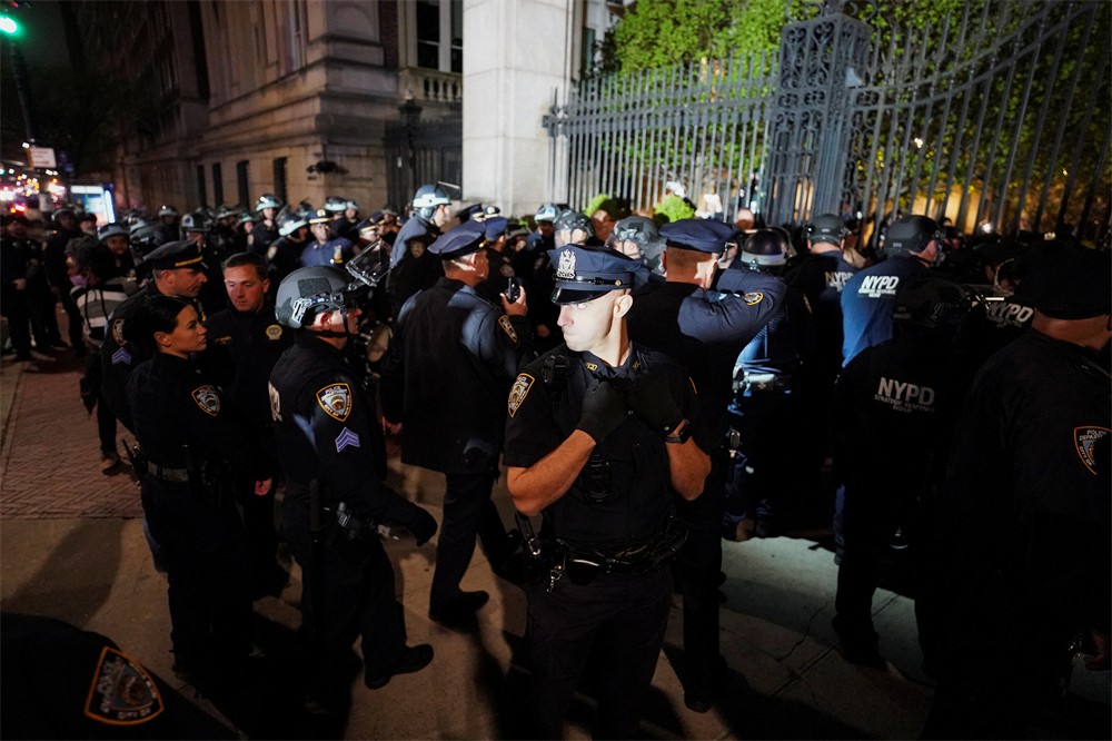 大批紐約市警員,包括防暴警察以及多架警車當?shù)貢r間4月30日晚大約9時,應哥倫比亞大學校方要求,進入校園清場,警員爬梯進入被示威學生佔據(jù)的漢密爾頓大樓二樓,並在大樓內(nèi)破門進入房間搜查。