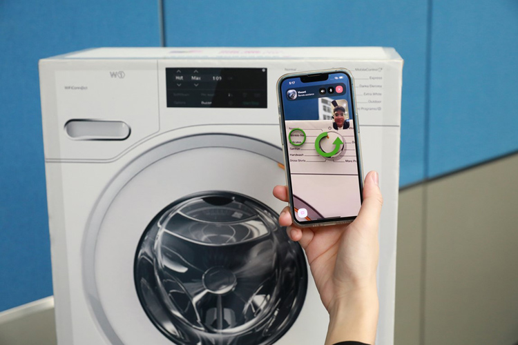 子女可使用「Dokodemo Call 隨意通」教長輩操作洗衣機。用家與教導(dǎo)者視像通話時,可先用鏡頭對準電器或電子產(chǎn)品,讓電話另一端的教導(dǎo)者清楚看到儀器,並能實時在視像畫面中添加不同顏色的AR圖示,如圓圈、旋轉(zhuǎn)符號等,方便用家即時在畫面中看到圖示,二人邊對話邊以AR圖示輔助說明。大會供圖