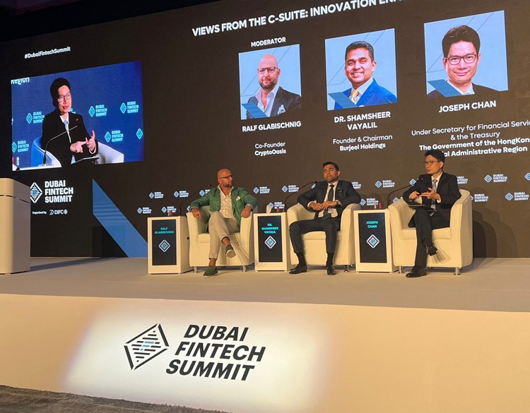 陳浩濂於「迪拜金融科技峰會(huì)」臺(tái)上發(fā)言。