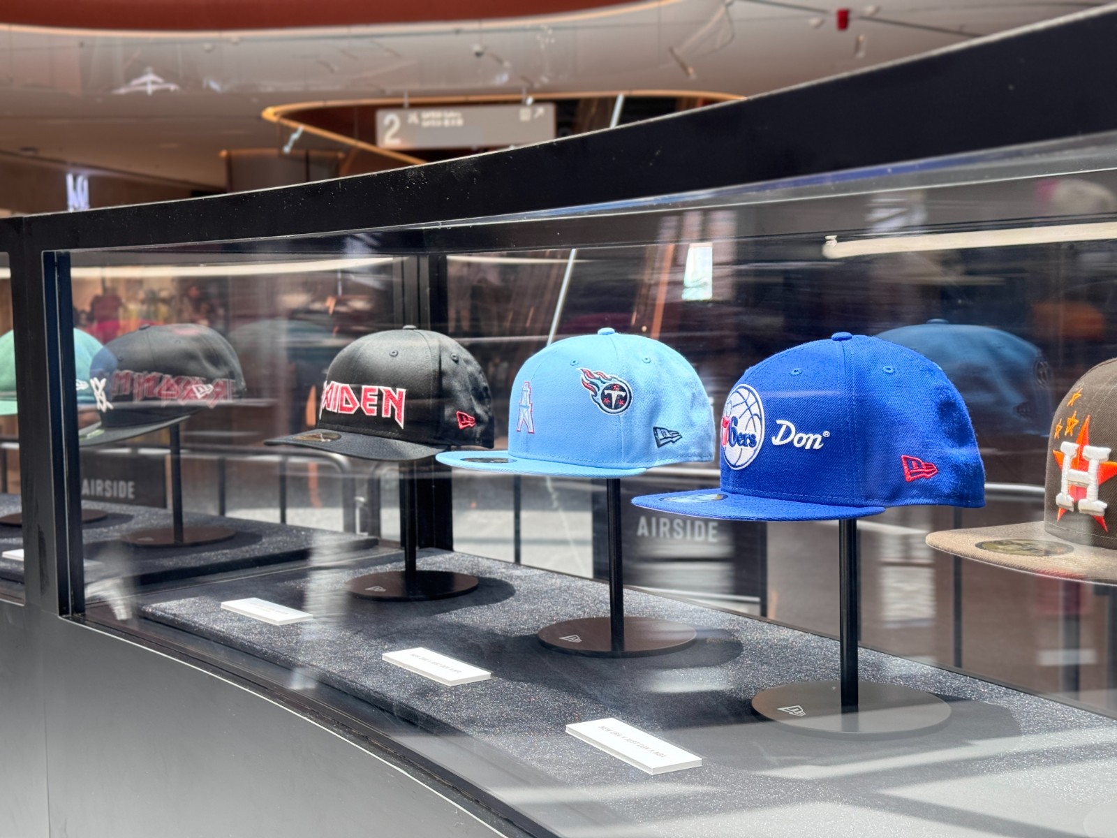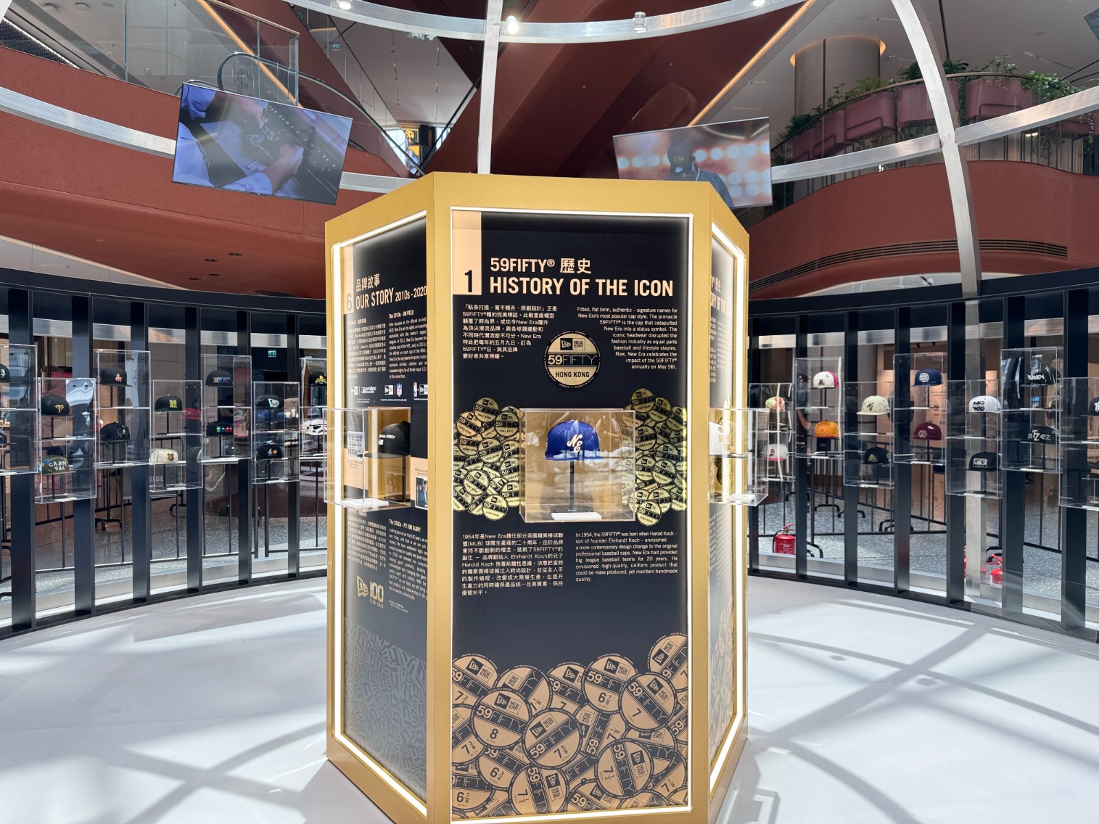 商場(chǎng)2樓中庭設(shè)立的展覽館以超過2米、放大版的59FIFTY帽子作整體設(shè)計(jì),70周年特別展示了70個(gè)59FIFTY跨界聯(lián)名款式,主要合作品牌包括Supreme、Evisu、SPORT b.等。品牌還展出多款具有歷史價(jià)值的珍品、知名籃球或足球明星的簽名版、全球不同潮牌聯(lián)名特別版等非賣品。