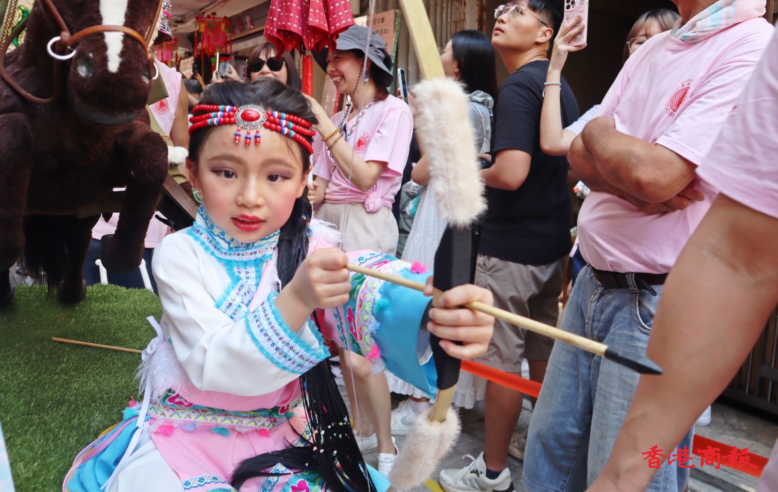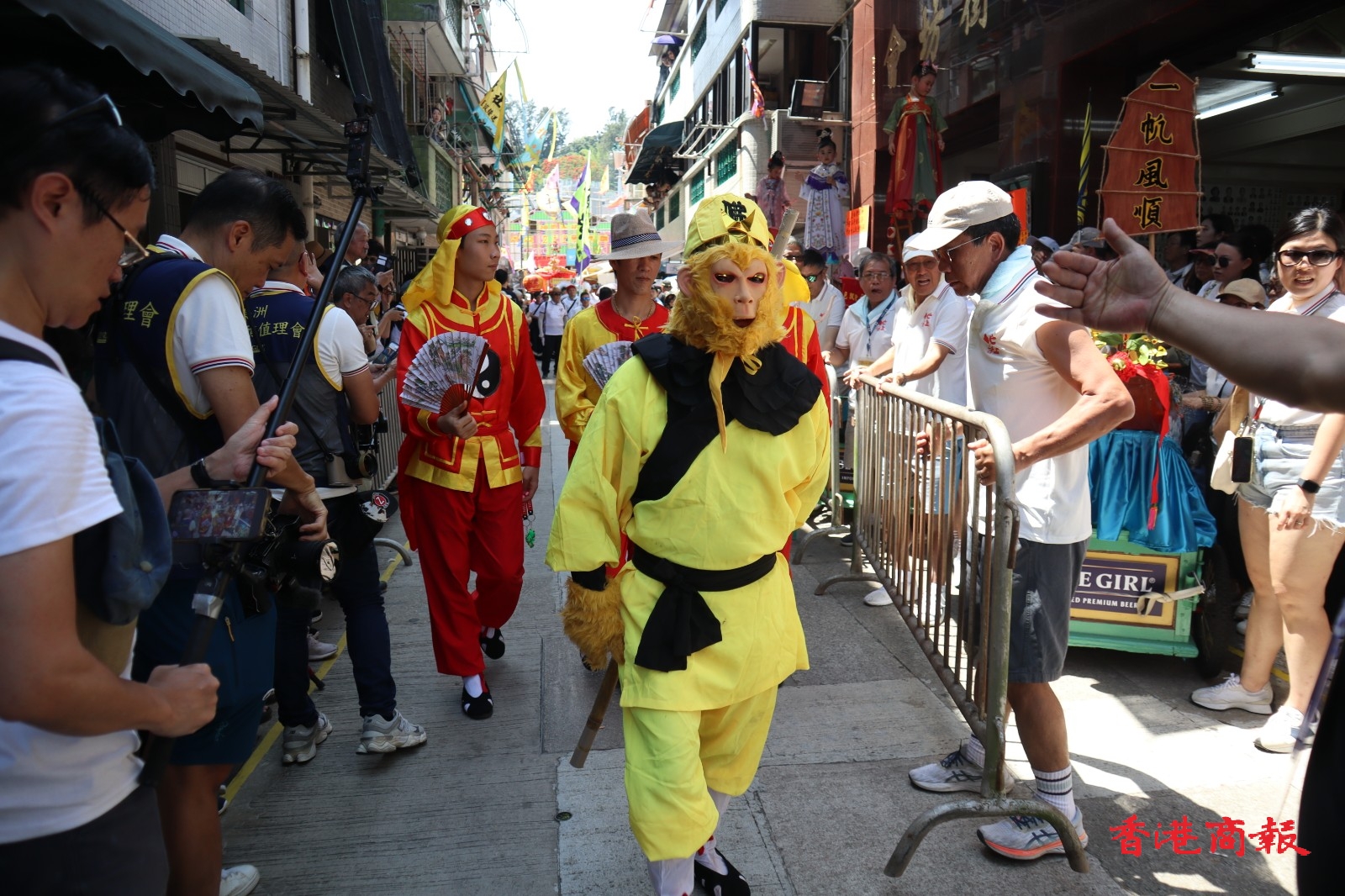 長(zhǎng)洲太平清醮重頭戲飄色會(huì)景巡遊今午(15日)舉行,被稱為「色芯」的一眾小演員粉墨登場(chǎng),打扮成各種神話、經(jīng)典及熱門人物,包括觀音、孫悟空、張家朗等。(記者 馮瀚文攝)