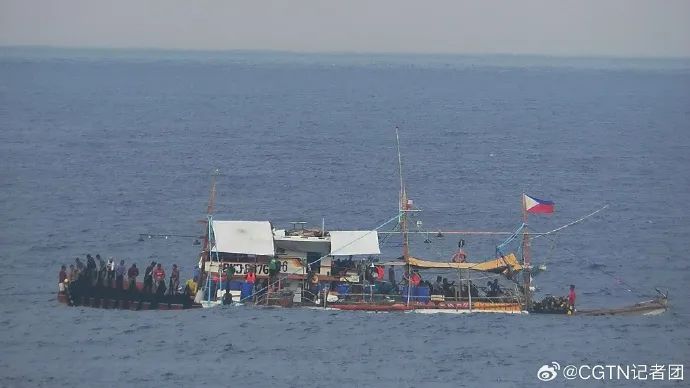 菲律賓多艘船隻在我黃巖島鄰近海域非法聚集、作秀,中國(guó)海警依法管制