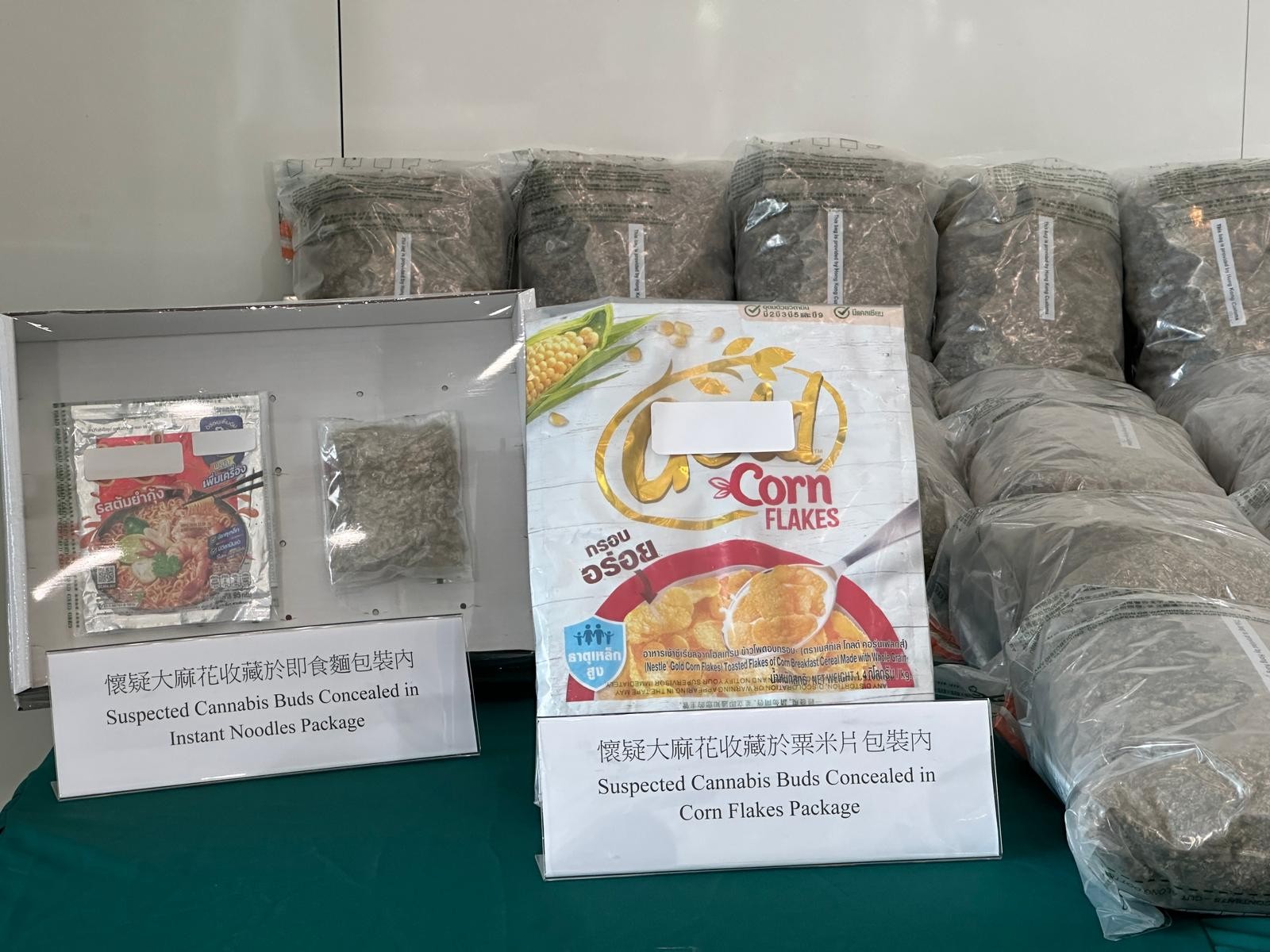 海關(guān)搗破海運販毒案,毒販利用入口粟米片和即食麵等包裝食品,收藏大麻花圖瞞天過海。海關(guān)上周搜查一個從泰國運港的貨櫃,檢獲77公斤大麻花,市值1600萬元,拘捕3名男子,其中一人涉嫌販毒明日(17日)提堂。