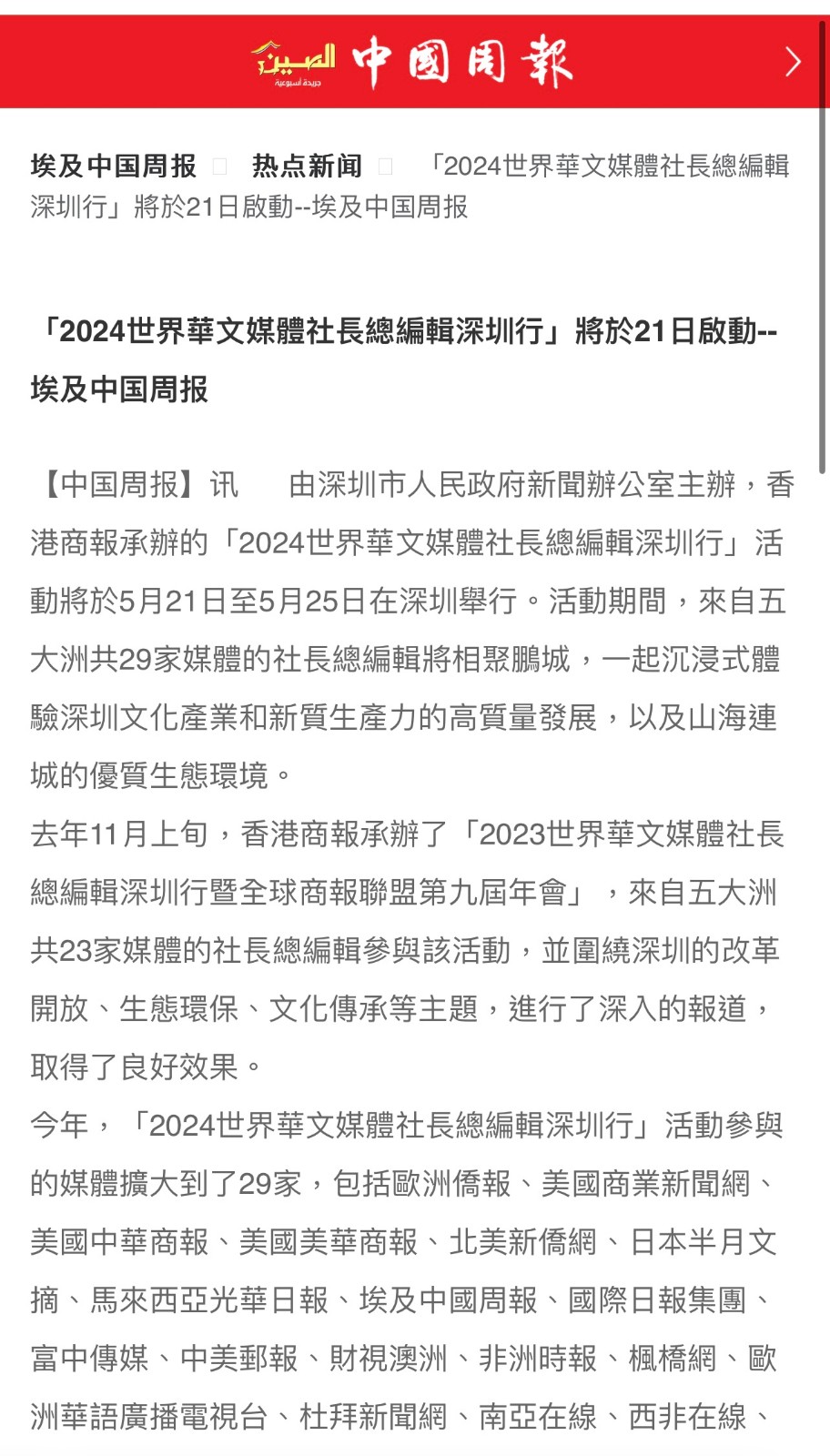 5月21日至25日,深圳市人民政府新聞辦公室主辦、香港商報承辦的「2024世界華文媒體社長總編輯深圳行」活動在深圳舉辦。