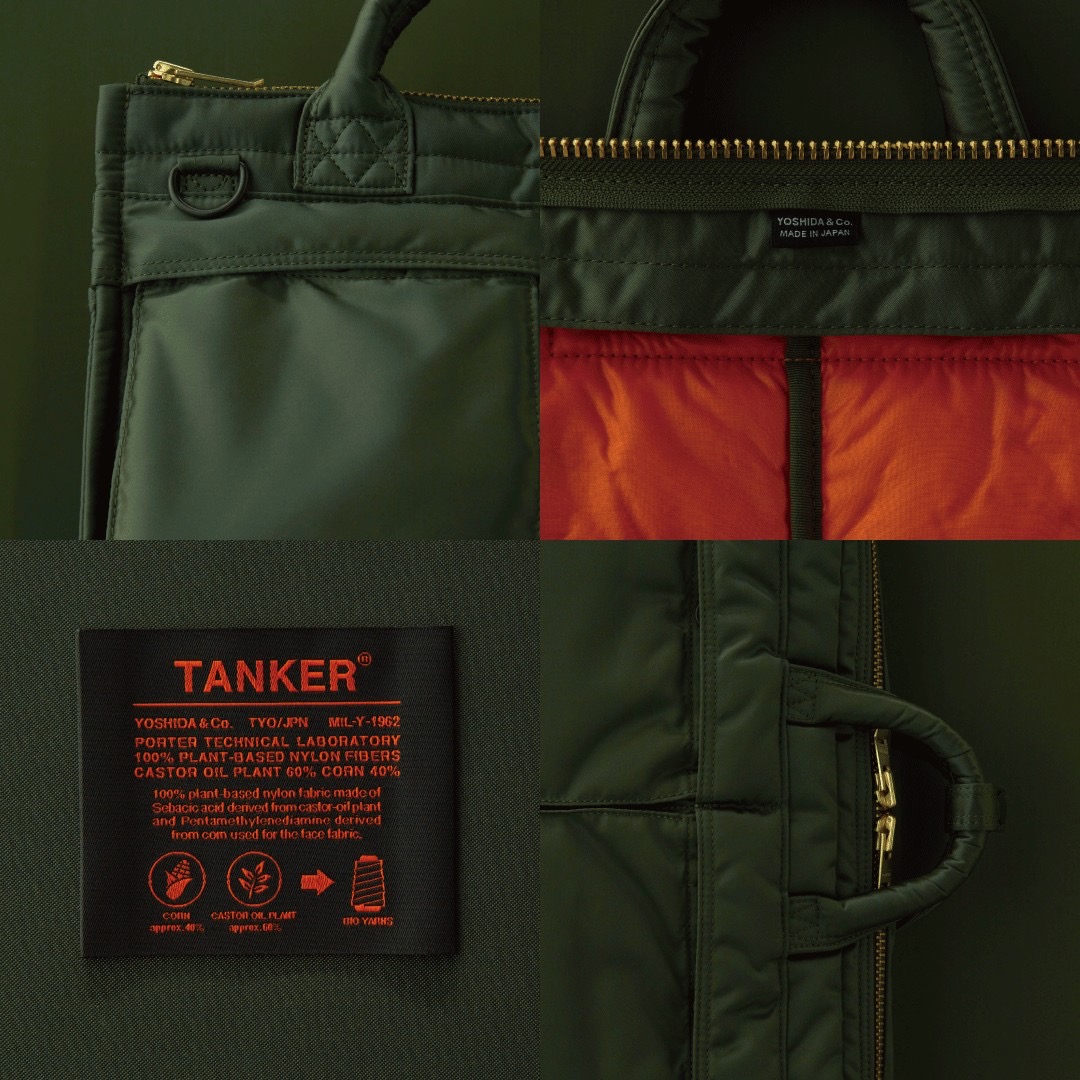 新TANKER系列使用的尼龍面料由約40%的「玉米」和約 60%的「蓖麻」製成,是與日本東麗株式會社(Toray Industries, Inc.) 合作研發(fā)的新尼龍面料,質(zhì)感柔軟耐磨。生產(chǎn)的植物尼龍紗線強度、柔軟度、光澤度等,與傳統(tǒng)的尼龍紗線品質(zhì)相同,觸感更縝密厚實。