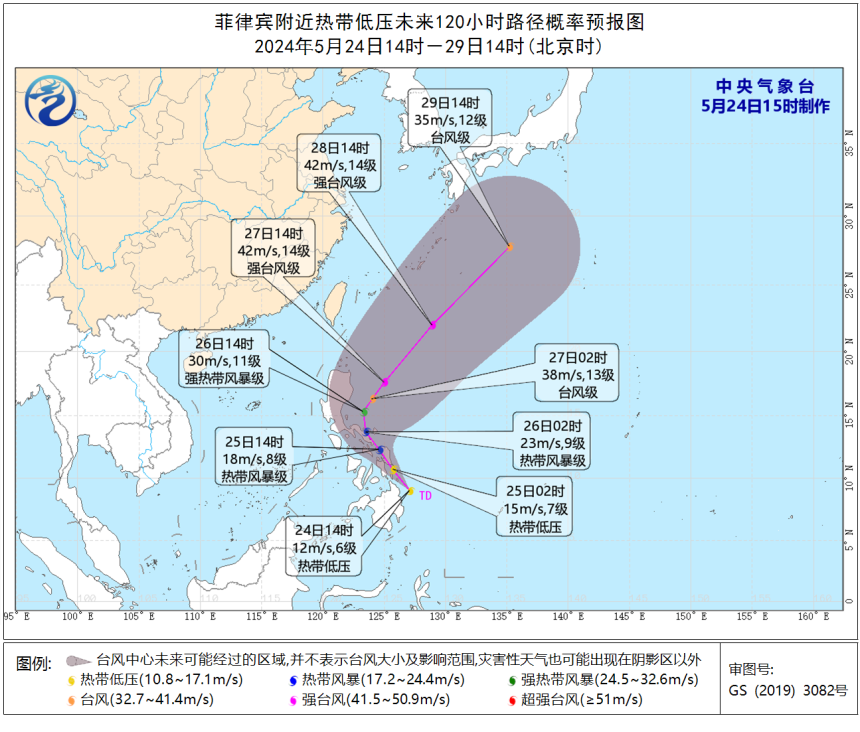 根據(jù)目前預(yù)測來看,其較大可能在靠近菲律賓呂宋島附近之後,逐漸向東北方向移動,趨向日本附近海域,對我國沒有直接影響。