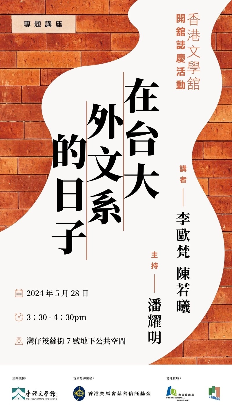 為慶祝開舘,香港文學舘還將舉辦系列文化講座。著名作家劉震雲(yún)將在香港都會大學與讀者談「文學的底色」,香港中文大學榮休講座教授李歐梵將與臺灣作家陳若曦回憶「在臺大外文系的日子」。