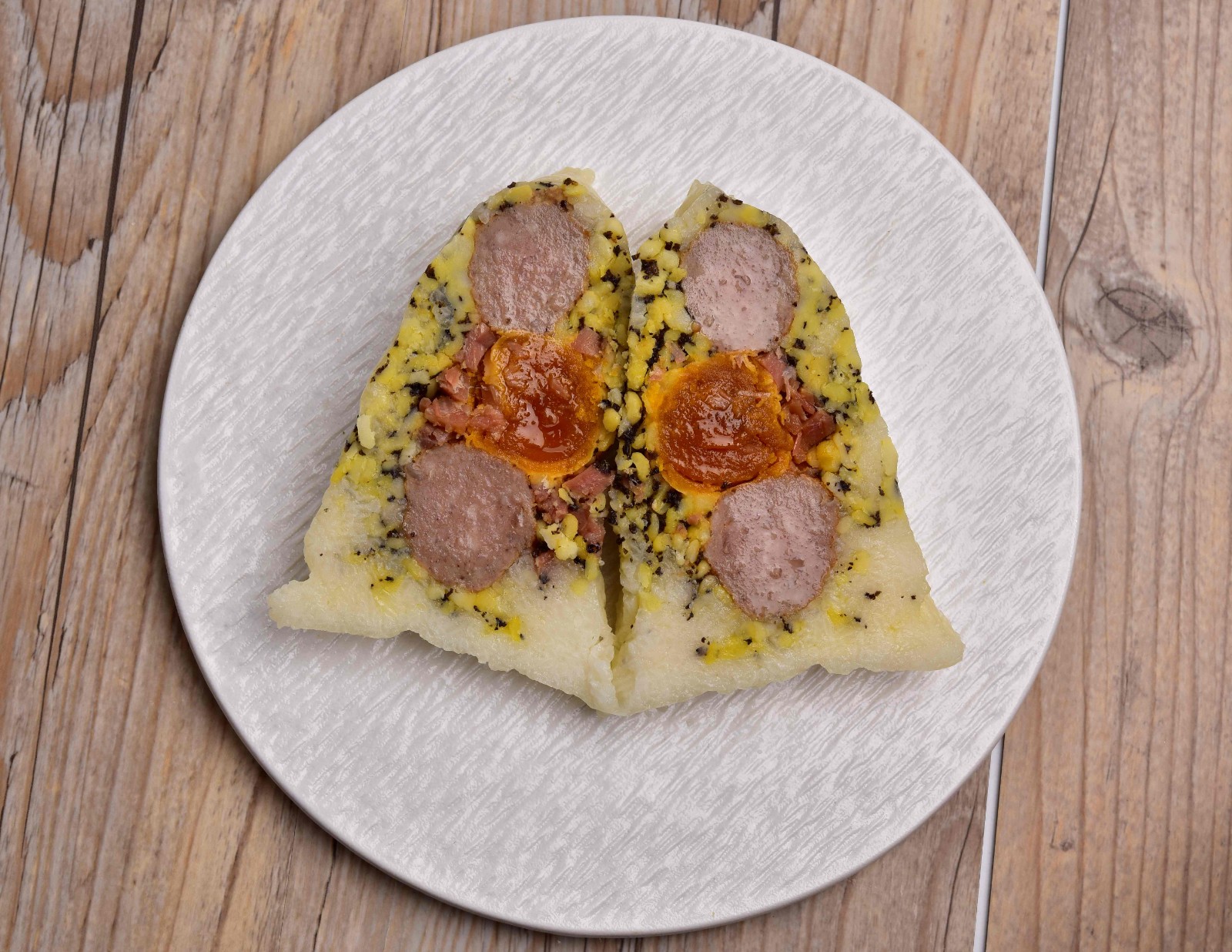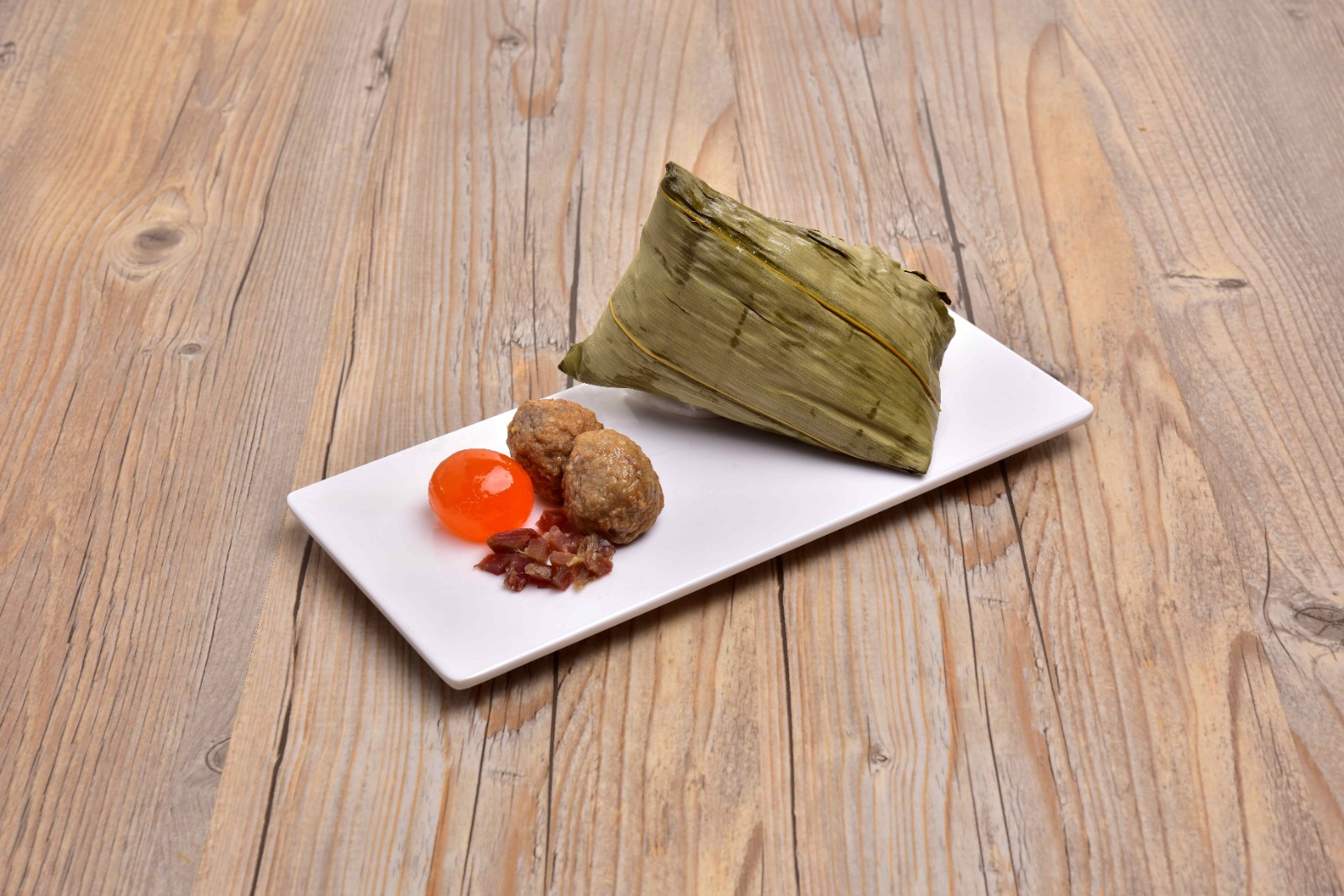 雞肉丸 XO 醬金腿原隻蛋黃糉,同樣採用金華火腿和原隻蛋黃作餡料,加入惹味的 XO 醬及 雞肉丸,相互融合,滋味豐富,既香濃又不油膩,餘韻悠長。
