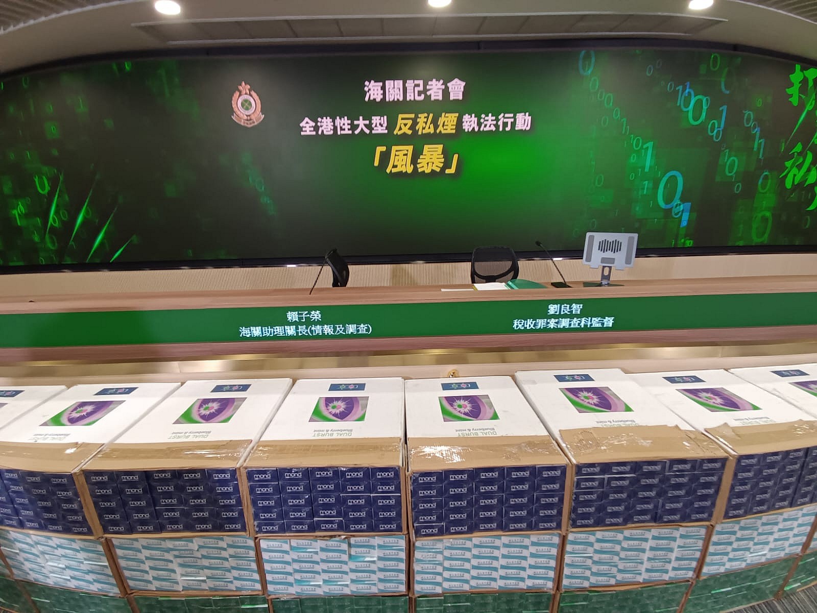 海關(guān)在過去3個月展開代號「風暴」反私煙行動,搗破私煙儲存、分銷中心和街頭買賣活動,共破獲4726宗案,緝獲約1.4億支私煙、雪茄和製成煙草,市值約6.25億元,應(yīng)課稅值4.54億元,並拘捕4347名男女,相信行動已打擊私煙集團收入來源。