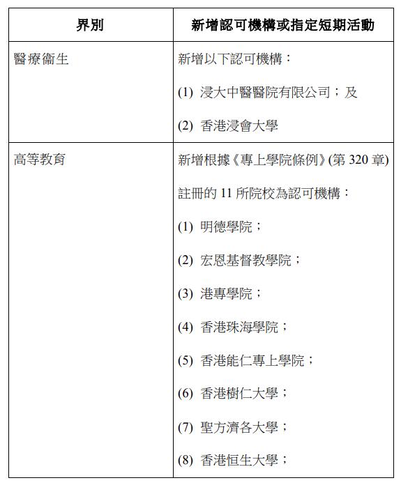 新增認(rèn)可機(jī)構(gòu)及指定短期活動