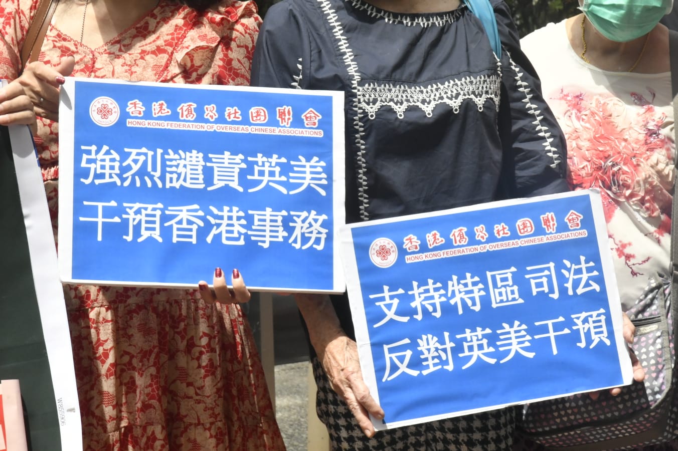香港僑界社團(tuán)聯(lián)會(huì)今午到英國(guó)駐港領(lǐng)事館請(qǐng)願(yuàn)。該會(huì)副會(huì)長(zhǎng)王德聖表示,英美在這次香港國(guó)安法司法判決後在其媒體上的惡意渲染,一味突出14名犯法者的辛酸,意圖將犯法者的行為合理化、合法化,對(duì)香港國(guó)安法進(jìn)行各種詆毀。