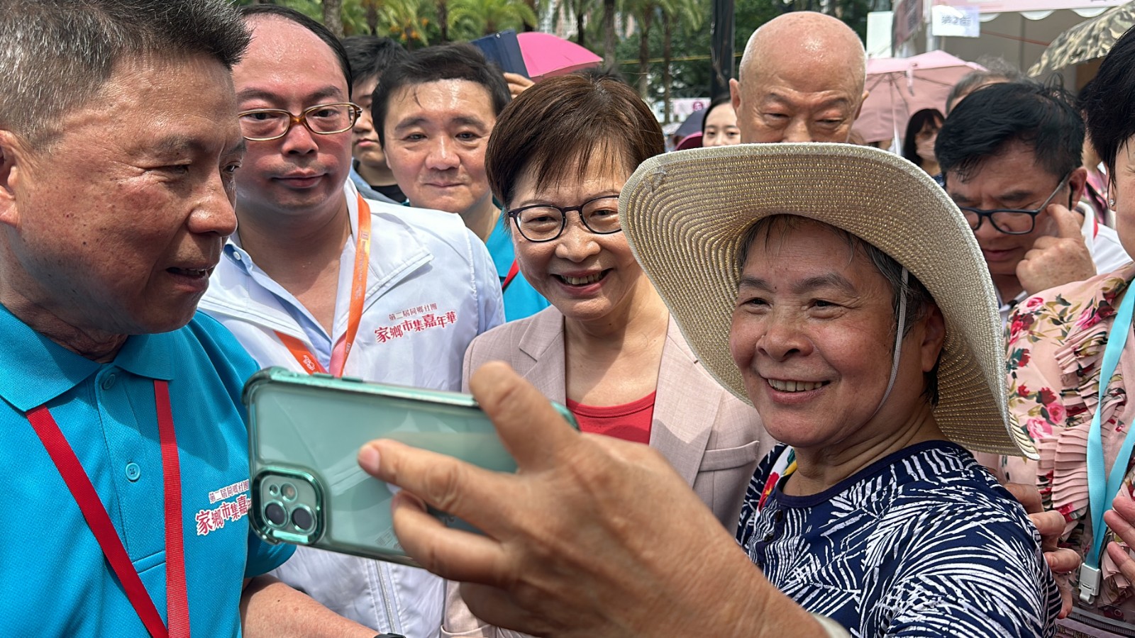 林鄭與現(xiàn)場(chǎng)人士拍照。記者 木子