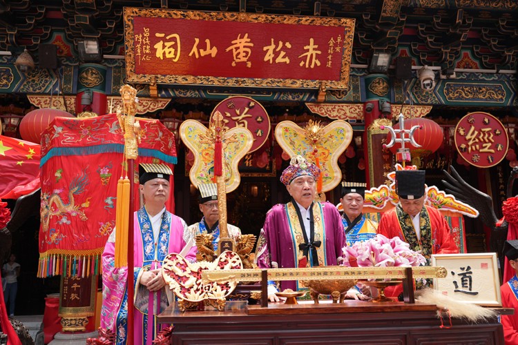 嗇色園黃大仙祠監(jiān)院李耀輝(義覺)道長親自登壇傳仙師寶訓。