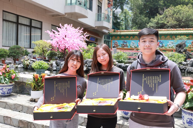 契子女恭領上契餐具,寓意「豐衣足食」,得到黃大仙師庇佑。