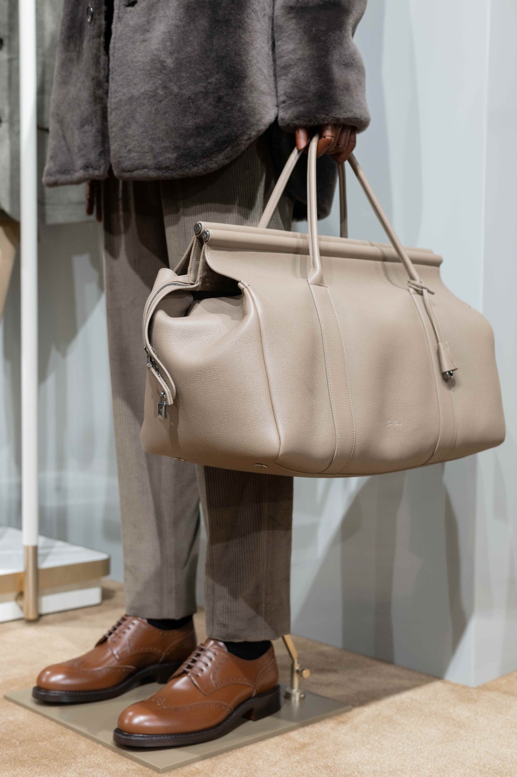 該系列的配件同樣講究質(zhì)感和設(shè)計(jì)。羊絨圍巾、皮革手套、配飾、多種材質(zhì)的帽子,以及手袋都能為整體造型增色。秋冬季節(jié)的穿搭需要注重層次感??梢詫⒀蚪q毛衣搭配駱馬毛外套,再加上一條厚實(shí)的圍巾,既能保暖又能展現(xiàn)豐富的層次感,選擇不同質(zhì)感的面料進(jìn)行搭配,可以增加穿搭的趣味性和時(shí)尚感。(部分圖片、記者:Katherine)