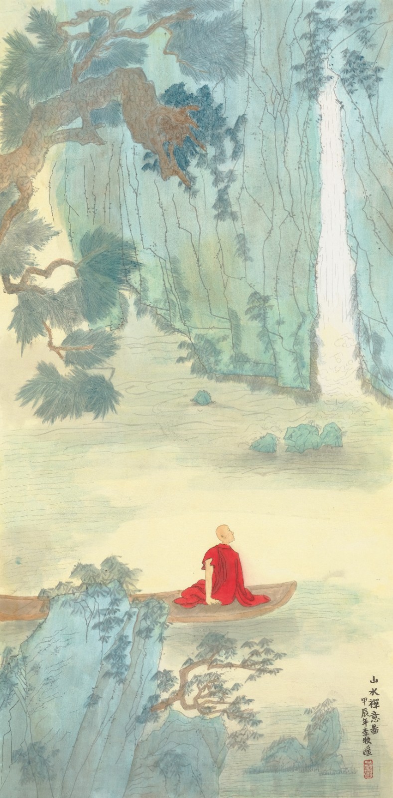 李牧遙作品《琴聲悟禪圖》,2024年。